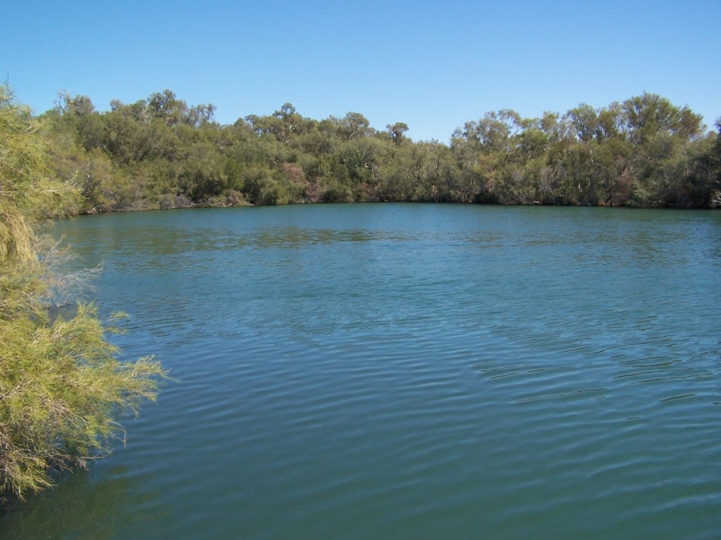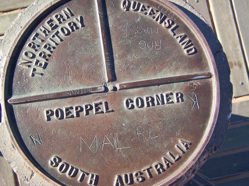Poeppel Corner. Deze keer zijn het de staten Northern Territory, Queensland en South Australia. In de buurt daarvan slaan we ons kamp op en deze keer slaap ik in een swag. Deze slaapzak met matras en canvas omhulsel vervangt de tent. Je slaapt heerlijk in de buitenlucht en kunt genieten van de prachtige sterrenhemel en de zonsopgang. Na een paar dagen slapen we deze keer eindelijk weer eens bij een douche in de buurt. Er is een natuurlijke bron aanwezig en dus ook voldoende water.