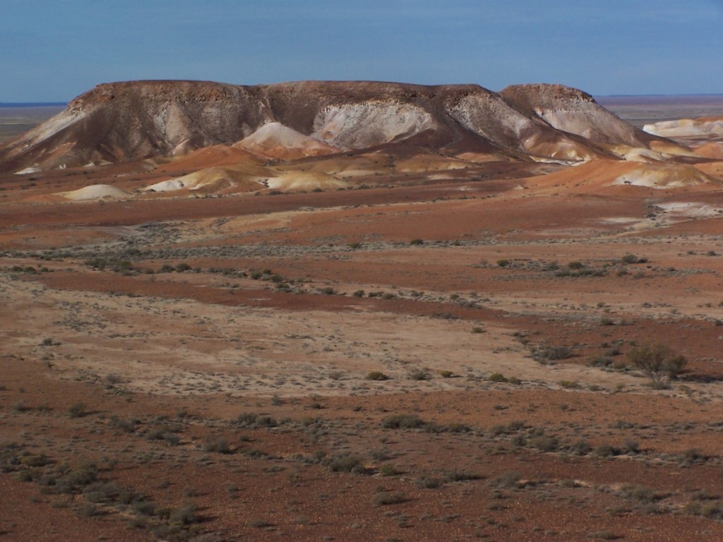 De mijnwerkers hebben hun woningen ook onder de grond en als ze een kamer extra nodig hebben, hakken ze gewoon een extra stuk uit, waarbij ze soms ook opaal vinden. De boekenwinkel waar ik even wil rondneuzen is helaas gesloten omdat de eigenaar zijn vliegtuig moet bijtanken volgens het briefje! William Creek is een andere plaats waar ik al eens eerder was. Dit dorpje bestaat eigenlijk alleen uit een pub, een camping en een airstrip voor de vliegtuigen. De eerste keer heb ik er overnacht in een tentje en het is leuk om alles weer terug te zien. Lake Cadibarrawirracanna is vooral leuk vanwege de naam (de langste plaatsaanduiding in Australië). Op weg naar de Flinders Ranges overnachten we nog in Marree, vroeger een belangrijke plaats voor het veetransport, want hier stopte de Ghan, de trein die het vee verder kon transporteren. Nu is het een slaperig stadje geworden.