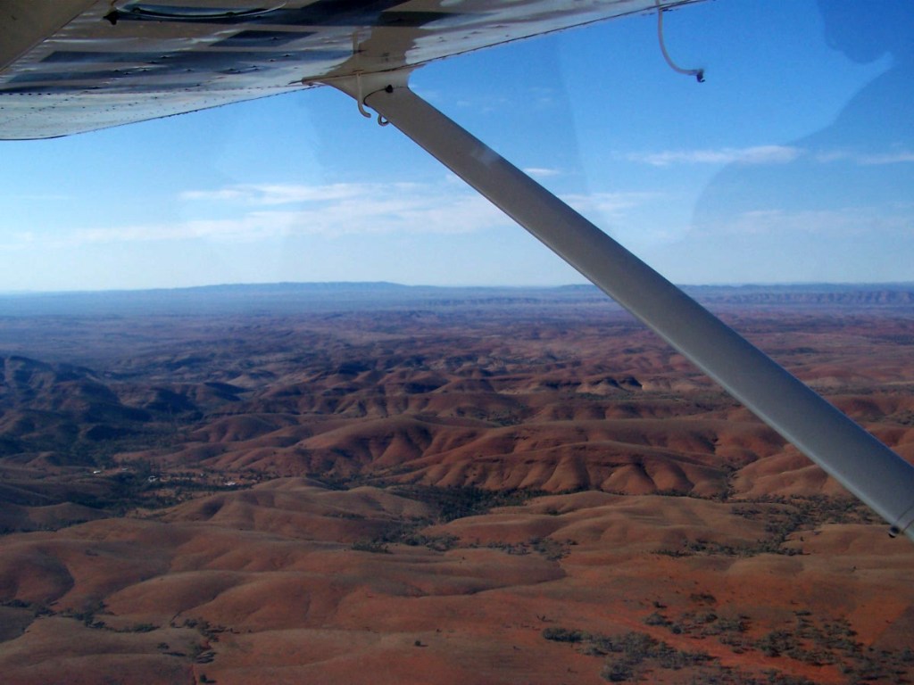 In de Flinders Ranges maken we een rondvlucht boven de ranges en zie ik Wilpena Pound vanuit de hoogte. Ook dit is weer een herinneringsmoment want in 2001 heb ik hier overnacht en ben ik een van de pieken van Wilpena Pound opgelopen. En bij Leigh Creek gaan we nog even op bezoek bij Talc Alf, de Leidenaar die hier zijn leven leidt in de Outback en in zijn levensonderhoud voorziet door kunstwerken te maken in kalksteen. Helaas is hij nu niet aanwezig. De vorige keer heeft hij ons rondgeleid en vermaakt met zijn wijsheden. In Blinman kunnen we gourmet coffee drinken. Ik leer weer wat bij, want heb natuurlijk geen idee wat ze er mee bedoelen. Het houdt in dat je geen oploskoffie krijgt, maar vers gezette koffie… Na een oponthoud, omdat een van de auto’s niet meer verder kan rijden (5 van de 6 wielbouten afgebroken!), rijden we in sneltreinvaart terug richting Broken Hill. Een mooie tocht is ten einde en ik heb er van genoten.