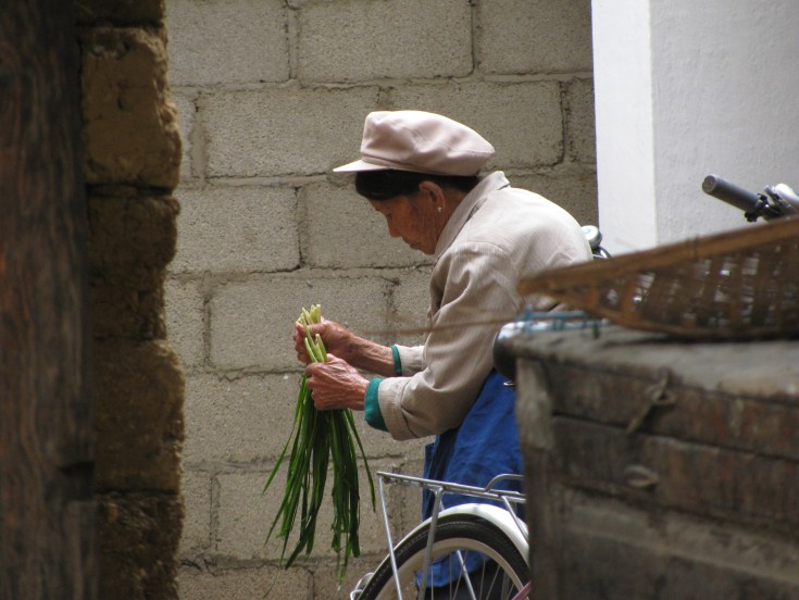 Het tweede gedeelte van de reis door China ging voornamelijk door de provincie Yunnan. Een provincie, die mooie natuur kent, kleine dorpjes en stadjes, veel rijstvelden en vooral veel etnische minderheden. Een paar van deze volkeren hebben we bezocht in o.a. de stadjes Lijiang en Dali. Een hoogtepunt was ons bezoek -per fiets!- aan Baisha, een klein dorpje waar het Naxi-volk woont. We werden verwelkomd door een klein, oud vrouwtje, niet groter dan 1,50 mtr.