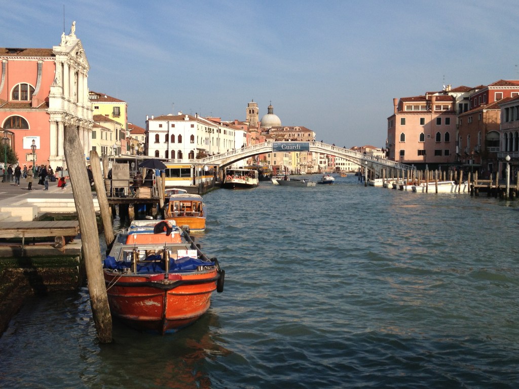 Een stad, hoog op het verlanglijstje en het moest er dus maar eens van komen. We hebben zin in een weekend weg en boeken een vlucht naar Venetië. De verwachtingen zijn hoog gespannen en vol ongeduld kijken we uit naar de aankomst. Maar, Venetië ligt op een propvol gebouwd, klein eilandje waarin ook nog eens de o zo beroemde canals liggen. Geen plek om met een vliegtuig te landen dus wordt het het nabijgelegen vliegveld Venetië-Treviso, vanwaar we de trein pakken naar Mestre. En dan moeten we nog een stukje met de bus voordat we eindelijk in Venetië zelf aankomen. Maar, het is de moeite waard en vanaf het eerste moment zijn we verliefd op deze stad. En wij prijzen onszelf gelukkig, want met de drukte valt het reuze mee. Eind november is zo te zien niet de meest populaire periode voor een bezoek. Én: het weer is ook nog eens prachtig. We hoeven dan ook geen gebruik te maken van de vele steigers, die overal nog liggen na de laatste overstromingen. Vol goede moed op zoek naar het hotel dan maar. Het adres is snel gevonden maar we zien op de plek waar we denken te gaan overnachten alleen een gebouw met dichtgetimmerde ramen. Dat ziet er niet goed uit. Beteuterd kijken we om ons heen. Wat nu? Gelukkig is dat moment maar van korte duur, want er komt iemand op ons af met de vraag: “Heeft u voor dit hotel gereserveerd?”. Dat hebben we! Het hotel blijkt voor een deel te zijn afgebrand tijdens renovatiewerkzaamheden en we krijgen het adres van een hotel niet ver hier vandaan waar we wél kunnen overnachten (zonder extra kosten). Hoe het oorspronkelijke hotel en de kamer er uitzagen hebben we natuurlijk nooit kunnen checken, maar het hotel waar we nu verblijven is in ieder geval prachtig. En ook nog eens gelegen aan het Canal Grande!