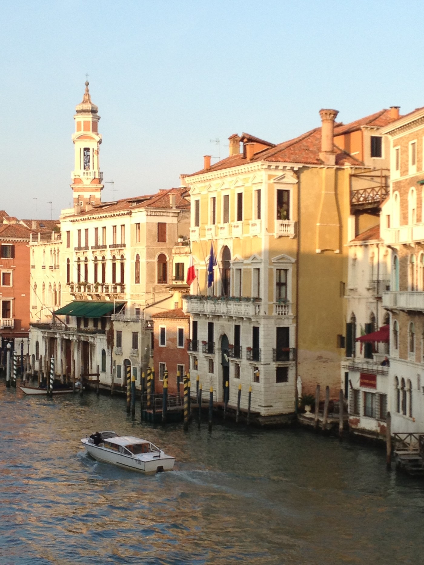 Een gondelvaart is er niet van gekomen, maar het “ritje” met de watertaxi over de Canal Grande is ook zeer bijzonder. Zeker als er ook nog eens een ambulance-vaartuig met hoge snelheid en sirenes voorbij komt stuiven. Deze taxi is dan ook meteen het enige vervoermiddel dat we hier gebruiken, verder is alles alleen te voet bereikbaar. Maar het eiland is niet zo heel groot en je loopt dus ook zo naar alle mooie plekken.