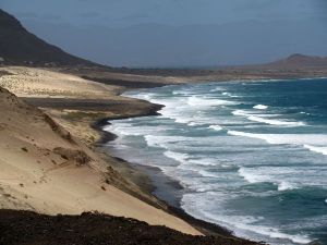 Ten westen van São Vicente ligt Santo Antão een beduidend groter eiland en in tegenstelling tot São Vicente voor een groot deel bedekt met een weelderige begroeiing. De hoge bergkam zal hier debet aan zijn, want als we aankomen met de veerboot vanaf São Vicente is daar nog niet veel van te merken. Met onze huurauto moeten we eerst via een kale berghelling naar boven. De weg is schitterend met de vele haarspeldbochten en steeds weer mooie uitzichten. Zodra we het hoogste punt naderen, wordt de omgeving volledig anders. We zien dichte vegetatie en worden verrast door de vochtige lucht en lichte neerslag. En eenmaal de top gepasseerd opent zich een vallei bedekt met een deken van groen. We lunchen heerlijk aan de kust en aanvaarden langzaam de terugweg naar de boot. We denken een leuke weg terug te hebben gevonden, een andere vallei in. Maar al snel gaat de weg omhoog, steeds steiler, en als dan ook nog eens het asfalt verandert in een zandweg komt de teleurstellende conclusie: deze weg gaat ons niet naar de boot leiden. Gelukkig lukt de hellingproef tegenwoordig uitstekend en ik krijg het voor elkaar om de auto op een bijzonder steil stuk te draaien en terug het dal in te rijden. Een toch wel wat hachelijk avontuur komt daarmee gelukkig tot een goed einde.