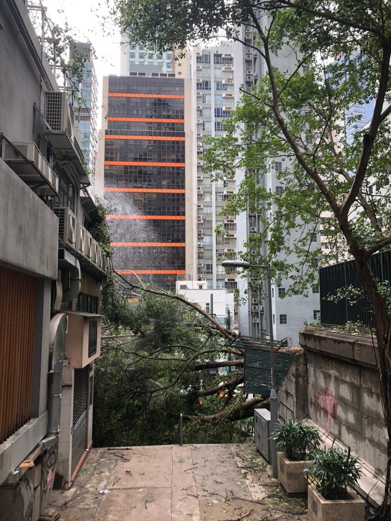 Opnieuw op weg voor een lekker avontuur. Hongkong kent elk jaar een periode met flinke stormen, maar deze keer was er al dagen de waarschuwing voor de ergste storm sinds er geregistreerd wordt. Dus eerst is er de onzekerheid of de vlucht wel vertrekt. Gelukkig is dat het geval en kunnen we ook veilig landen. Het weer is op dat moment nog heel goed. Wel heel erg warm en vooral vochtig. Echt een stilte voor de storm, dus het wachten kan beginnen. De volgende ochtend is het raak. Stromende regen en de meeste winkels, café’s etc. zijn gesloten. Geen kip op straat en dat is een vreemde gewaarwording want van de vorige keer weet ik nog dat Hongkong een mierenhoop is. Gelukkig is er toch nog iets open en kunnen we ontbijten. Dat ontbijt duurt van ongeveer half elf tot half vier, want we kunnen steeds niet naar buiten.