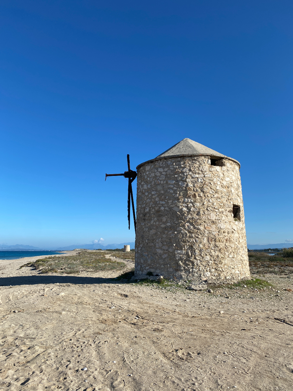Na en paar heerlijke dagen op de camping aan het strand bij Lampiri is het tijd om de Peloponnesos te verlaten. Dat kun je op meerdere manieren doen: terug richting Athene maar daar ben ik vandaan gekomen dus dat is geen optie. Ik rij naar Patras, vanwaar ik met een veerboot of via een brug over de Golf van Korinthe naar het vasteland van Griekenland kan. De brug is enorm. Maar er zijn twee redenen waarom ik voor de veerboot kies. Ten eerste is dat goedkoper, want de prijs voor een kaartje is veel lager dan de tol voor de brug. Ten tweede, het waait behoorlijk hard en dan wordt het afgeraden om de brug te nemen met camper, bus of vrachtwagen. Ik ben dan ook in gezelschap van een aantal vrachtwagens, die ook om die redenen de boot hebben genomen. De reis gaat van het ene (schier)eiland naar het andere. Was de Peloponnesos oorspronkelijk een schiereiland maar door het kanaal van Korinthe een eiland geworden; Lefkada was een eiland maar is door een brug nu verbonden met het vasteland. Het is maar een kleine, een beetje een krakkemikkige brug, maar het scheelt weer een boottochtje. De belangrijkste plaats is Lefkas (of Lefkada voor de Grieken), waar ik besluit te overnachten. Helaas is de camperplaats die ik dacht te vinden, niet meer in gebruik en dus moet ik op zoek naar een andere plek. Dan blijkt ook hier maar weer, dat in het naseizoen (of eigenlijk is het helemaal geen seizoen meer) de overnachtingsmogelijkheden beperkt zijn. Gelukkig kan ik bij de haven op een parkeerplaats, onder goedkeurend en toeziend oog van de politie, de nacht doorbrengen. Helaas heb ik niet meer voldoende tijd om het eiland verder uitgebreid te bezoeken want de gereserveerde veerboot naar Italië wacht en ik wil in ieder geval nog naar Meteora. En hoewel de overnachting op de parkeerplaats voor 1 nachtje prima was, voel ik er niet zoveel voor om dit vaker te doen. Daarom besluit ik om nog wel ‘s ochtends een wandeling te maken waarbij ik een paar leuke oude molens zie en het kasteel van meerdere kanten kan bewonderen, maar daarna schiet ik toch echt de brug weer over, op weg naar de bergen en kloosters van Meteora. Een weg die de laatste ca. 55 kilometer zo slingert en golft dat je er bijna misselijk van wordt. Maar de uitzichten onderweg zijn weer overweldigend en het is een prachtige rit.