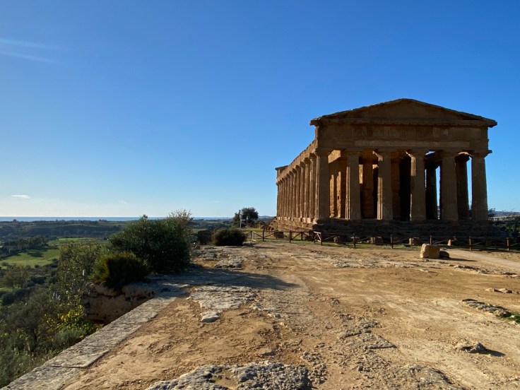 Corona blijft iedereen en dus ook mij bezig houden al ben ik dan een soort van even uit de werkelijkheid verdwenen. “Boosteren” is het woord van de dag zo lijkt het. Maar ik zit op zo’n 2.500 km afstand van thuis en die uitnodiging ga ik natuurlijk nooit krijgen. Gelukkig word ik getipt over een mogelijkheid die in een naburig stadje geboden wordt aan toeristen om de 3e vaccinatie te komen halen. Dus met een aantal mede-campinggasten trekken we vol goede moed naar de Italiaanse “GGD” en sluiten aan in de rij. Want op afspraak wordt hier niet gewerkt of je nu inwoner van het stadje bent of toerist. Er is nog wel een formaliteit af te handelen, want je hebt een fiscaal nummer nodig, Italiaans wel te verstaan. Dat heb ik natuurlijk niet, maar daar weten ze wel wat op. Je gaat naar een soort huisartsenpost en daar wordt je een nummer toegekend. Dus ik glip even de rij uit om dat te regelen en verwacht dat mijn nieuwe vrienden inmiddels al wel hun prik zullen hebben gekregen. Wanneer ik na een half uur terugkom (zo snel was die formaliteit nu ook weer niet afgehandeld), zijn ze zeker 5 meter verder in de rij. Ik kan me gewoon weer bij hen aansluiten. Een lang verhaal kort: ik was er om 10.15 uur en om 14.30 had ik de prik te pakken. Momenteel zit ik in San Leone, een niet heel boeiend stadje aan de kust. Maar het is wel een goede uitvalsbasis voor Agrigento en de Valle dei Templi. Agrigento is een eeuwenoude stad, zoals veel oude steden, hoog gelegen tegen een berg. Waren de steden, die ik tot nu bezocht, vaak na een grote aardbeving weer in mooie stijl herbouwd, deze stad heeft geen last van aardbevingen gehad en is écht oud. Het doet heel middeleeuws aan, maar helaas is alles wel heel slecht onderhouden en heb ik het idee dat lang niet alle woningen bewoond zijn. Een wandeling door de, soms zeer steile, straatjes is echter wel zeer de moeite waard. En de Valle dei Templi? De vallei van de tempels is eigenlijk een heuvelrug waarop tempels zijn gebouwd door de Grieken (jawel, daar zijn ze weer). Een zeer uitgestrekt gebied met veel onherkenbaar gesteente waar ooit gebouwen hebben gestaan, maar ook heel mooi bewaard gebleven tempels.