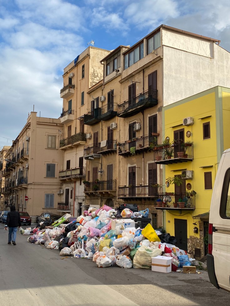 Palermo is makkelijk bereikbaar voor mij, dus ik ben er inmiddels al een paar keer geweest. Er is genoeg te zien en ik vind het een heerlijke stad om gewoon maar een beetje doorheen te kuieren. Her en der zijn mooie gebouwen, standbeelden, monumenten e.d. te bewonderen. Hoogtepunten zijn de kathedraal, de Quattro Canti (een klein kruispunt met op elke hoek prachtige barok gevels) en de Pretoria fonteinen. En dat wordt dan voortdurend afgewisseld met de vreselijkste achterafstraatjes vol afbladderende huizen, afval op straat en stank. Dat Italië een afvalverwerkingsprobleem heeft dat wist ik, maar dat het zo erg is valt toch tegen. Overal liggen bergen afval en natuurlijk wordt dat door de wind ook nog eens flink door de straten verspreid. Je moet er niet aan denken wat daar allemaal in rond woelt ‘s nachts. Toch doen ze wel hun best om het op te ruimen want ik zie op 1e kerstdag vuilniswagens rijden!