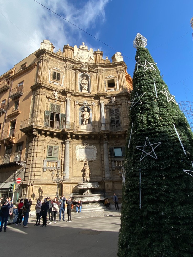 Het was een vreemde kerst voor mij natuurlijk. Zo ver van Nederland en de familie is toch wel een bijzondere ervaring. En dan ook nog lekker buiten kunnen zitten in het zonnetje met 19℃. Gelukkig heeft Corona niet alleen nadelen gebracht. Inmiddels zijn we allemaal zeer vertrouwd met “videobellen”, in welke vorm dan ook. Dus kunnen we digitaal kerst vieren. Al is dat behelpen op een camping met slechte wifi-verbinding. Zoals ik in mijn vorige blog al meldde, was ik nieuwsgierig naar hoe kerst op Sicilië wordt beleefd. Voor zover ik het heb kunnen zien gaat het er hier wel wat relaxter aan toe dan in Nederland. Ik was bijvoorbeeld de dag voor kerst in een supermarkt waar ik 1 van ongeveer 10 klanten was. Dus ik kon heerlijk op mijn gemak mijn inkopen doen. De straten zijn wel her en der van lichtjes voorzien, maar ook dat is niet uitbundig. En ik heb in Palermo ook geen bosjes mensen met enorme hoeveelheden tassen (dus kerstinkopen) zien sjouwen. Nu is dat voor mij natuurlijk een momentopname maar mijn indruk is dat het hier vooral gaat om met het hele gezin de hele middag/avond aan tafel zitten en lekker eten en drinken. Want de restaurants zaten allemaal propvol.