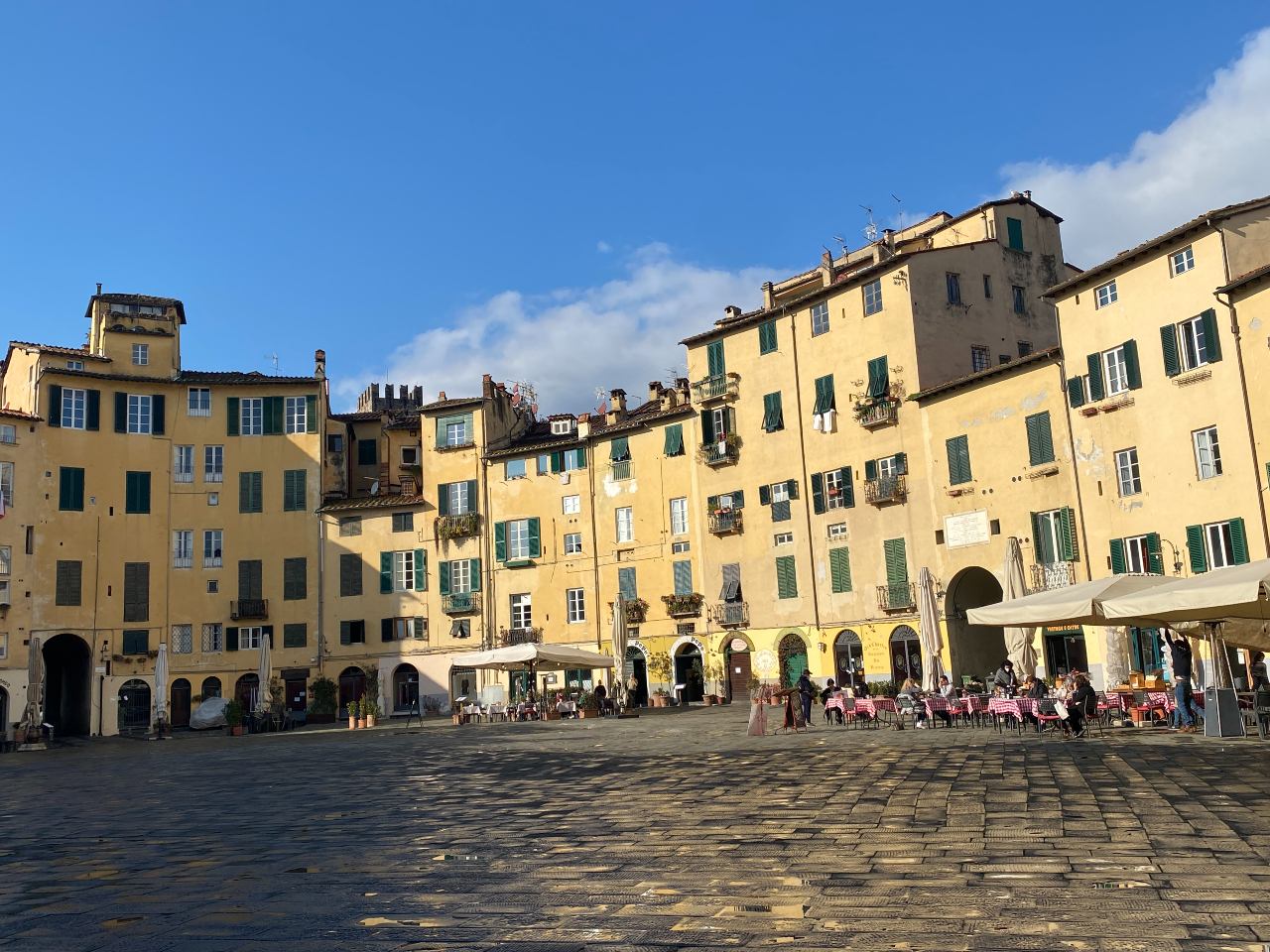 De avonden en nachten worden kouder en dat betekent dat ik inmiddels in het noordelijke deel van Italië ben gekomen. Veel verder naar het noorden wil ik niet want dan kom ik in de Alpen terecht met alle winterse omstandigheden die daarbij horen. Dus ik buig langzaam af richting Frankrijk. Maar eerst heb ik nog een tussenstop in Lucca. Ik weet niet of je een stad zo kunt noemen, maar ik vind het een schattig stadje. De grote bezienswaardigheden zoals in Florence zul je hier niet vinden, maar het is heel attractief met mooie pleintjes, een stadsmuur en de “boomtoren”, een Romaans-Gotische toren met bomen op de top. De stadsmuur is ooit gebouwd als verdedigingswerk maar heeft uiteindelijk alleen dienst gedaan als buffer tegen overstromingen van de rivier de Serchio. Tijdens een van die overstromingen moest overigens Elisa Bonaparte, de zus van Napoleon, gered worden. Dit deden zij door haar over de muur de takelen, want de poorten konden natuurlijk niet geopend worden. En net als Florence is ook Lucca trots op haar beroemde inwoners. Daarvan is Giacomo Puccini, de componist van de opera Madame Butterfly, de bekendste.