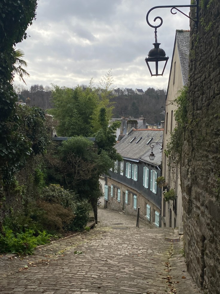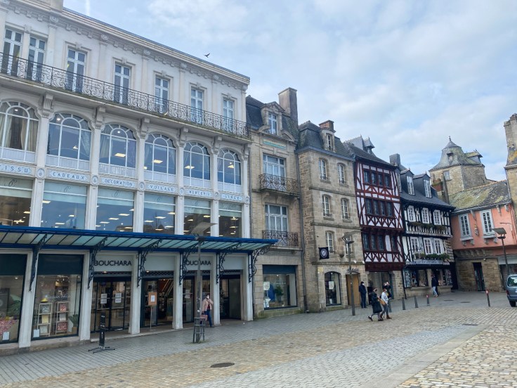 Quimper (Quimper (Kemper in het Bretons) is de oudste stad van Bretagne en was vroeger de hoofdstad van het koninkrijk Bretagne (9e en 10e eeuw). Het grootste deel van de binnenstad ademt dan ook een middeleeuwse sfeer uit. Er zijn echter nóg oudere gebouwen. Deze staan in de wijk Locmaria aan de rivier en stammen uit de tijd dat de Romeinen in deze streek de baas waren. Genoeg te zien dus, ook al omdat de stad op diverse plekken mooie tuinen heeft aangelegd. Je kunt dus een mooie stadswandeling maken en toch ook van de natuur genieten. Ze hebben zelfs een botanische tuin met een banksia-boom. Dat doet mijn Australië-hart sneller kloppen, want de banksia komt oorspronkelijk uit mijn favoriete vakantieland. Ik schreef al eerder over de crêpes die waanzinnig populair zijn in Bretagne. In Quimper wemelt het ook van de crêperies. Ze noemen de stad niet voor niets de meest Bretonse van alle steden, dus daar horen die pannenkoeken ook bij (want eigenlijk zijn het dat gewoon natuurlijk). Je moet zelfs moeite doen om een eettentje te vinden waar ze iets anders serveren. Op het Place au Beurre, een klein pleintje midden in de stad, lijkt in alle panden wel een crêperie te huizen, ik tel er zeker 7. Maar gelukkig vind ik dan toch nog een koffietentje, waar ze wel iets anders serveren.Kemper in het Bretons) is de oudste stad van Bretagne en was vroeger de hoofdstad van het koninkrijk Bretagne (9e en 10e eeuw). Het grootste deel van de binnenstad ademt dan ook een middeleeuwse sfeer uit. Er zijn echter nóg oudere gebouwen. Deze staan in de wijk Locmaria aan de rivier en stammen uit de tijd dat de Romeinen in deze streek de baas waren. Genoeg te zien dus, ook al omdat de stad op diverse plekken mooie tuinen heeft aangelegd. Je kunt dus een mooie stadswandeling maken en toch ook van de natuur genieten. Ze hebben zelfs een botanische tuin met een banksia-boom. Dat doet mijn Australië-hart sneller kloppen, want de banksia komt oorspronkelijk uit mijn favoriete vakantieland. Ik schreef al eerder over de crêpes die waanzinnig populair zijn in Bretagne. In Quimper wemelt het ook van de crêperies. Ze noemen de stad niet voor niets de meest Bretonse van alle steden, dus daar horen die pannenkoeken ook bij (want eigenlijk zijn het dat gewoon natuurlijk). Je moet zelfs moeite doen om een eettentje te vinden waar ze iets anders serveren. Op het Place au Beurre, een klein pleintje midden in de stad, lijkt in alle panden wel een crêperie te huizen, ik tel er zeker 7. Maar gelukkig vind ik dan toch nog een koffietentje, waar ze wel iets anders serveren.