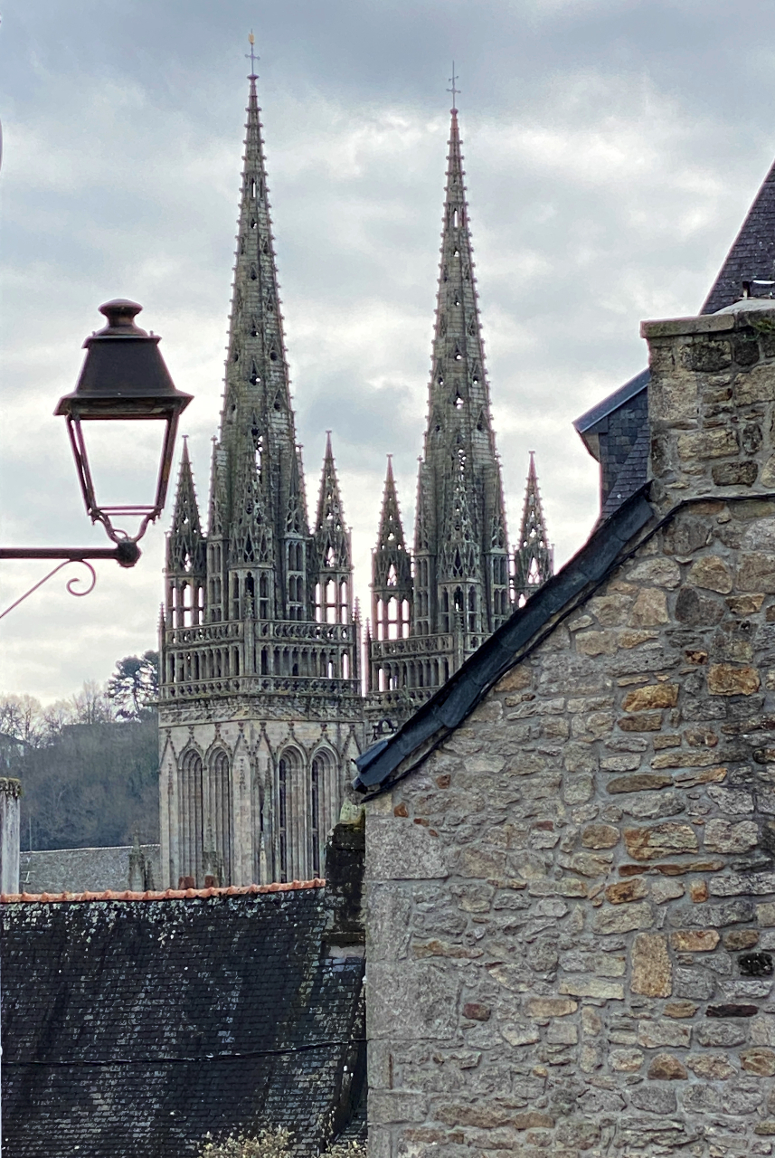 Quimper (Quimper (Kemper in het Bretons) is de oudste stad van Bretagne en was vroeger de hoofdstad van het koninkrijk Bretagne (9e en 10e eeuw). Het grootste deel van de binnenstad ademt dan ook een middeleeuwse sfeer uit. Er zijn echter nóg oudere gebouwen. Deze staan in de wijk Locmaria aan de rivier en stammen uit de tijd dat de Romeinen in deze streek de baas waren. Genoeg te zien dus, ook al omdat de stad op diverse plekken mooie tuinen heeft aangelegd. Je kunt dus een mooie stadswandeling maken en toch ook van de natuur genieten. Ze hebben zelfs een botanische tuin met een banksia-boom. Dat doet mijn Australië-hart sneller kloppen, want de banksia komt oorspronkelijk uit mijn favoriete vakantieland. Ik schreef al eerder over de crêpes die waanzinnig populair zijn in Bretagne. In Quimper wemelt het ook van de crêperies. Ze noemen de stad niet voor niets de meest Bretonse van alle steden, dus daar horen die pannenkoeken ook bij (want eigenlijk zijn het dat gewoon natuurlijk). Je moet zelfs moeite doen om een eettentje te vinden waar ze iets anders serveren. Op het Place au Beurre, een klein pleintje midden in de stad, lijkt in alle panden wel een crêperie te huizen, ik tel er zeker 7. Maar gelukkig vind ik dan toch nog een koffietentje, waar ze wel iets anders serveren.Kemper in het Bretons) is de oudste stad van Bretagne en was vroeger de hoofdstad van het koninkrijk Bretagne (9e en 10e eeuw). Het grootste deel van de binnenstad ademt dan ook een middeleeuwse sfeer uit. Er zijn echter nóg oudere gebouwen. Deze staan in de wijk Locmaria aan de rivier en stammen uit de tijd dat de Romeinen in deze streek de baas waren. Genoeg te zien dus, ook al omdat de stad op diverse plekken mooie tuinen heeft aangelegd. Je kunt dus een mooie stadswandeling maken en toch ook van de natuur genieten. Ze hebben zelfs een botanische tuin met een banksia-boom. Dat doet mijn Australië-hart sneller kloppen, want de banksia komt oorspronkelijk uit mijn favoriete vakantieland. Ik schreef al eerder over de crêpes die waanzinnig populair zijn in Bretagne. In Quimper wemelt het ook van de crêperies. Ze noemen de stad niet voor niets de meest Bretonse van alle steden, dus daar horen die pannenkoeken ook bij (want eigenlijk zijn het dat gewoon natuurlijk). Je moet zelfs moeite doen om een eettentje te vinden waar ze iets anders serveren. Op het Place au Beurre, een klein pleintje midden in de stad, lijkt in alle panden wel een crêperie te huizen, ik tel er zeker 7. Maar gelukkig vind ik dan toch nog een koffietentje, waar ze wel iets anders serveren.
