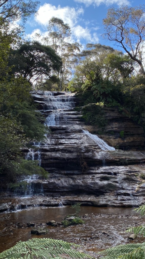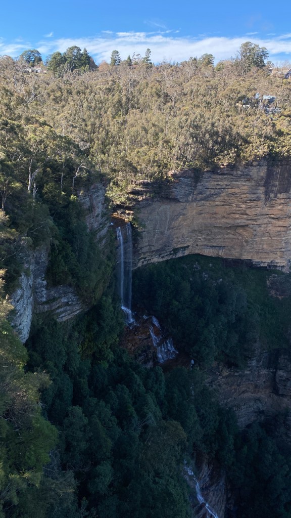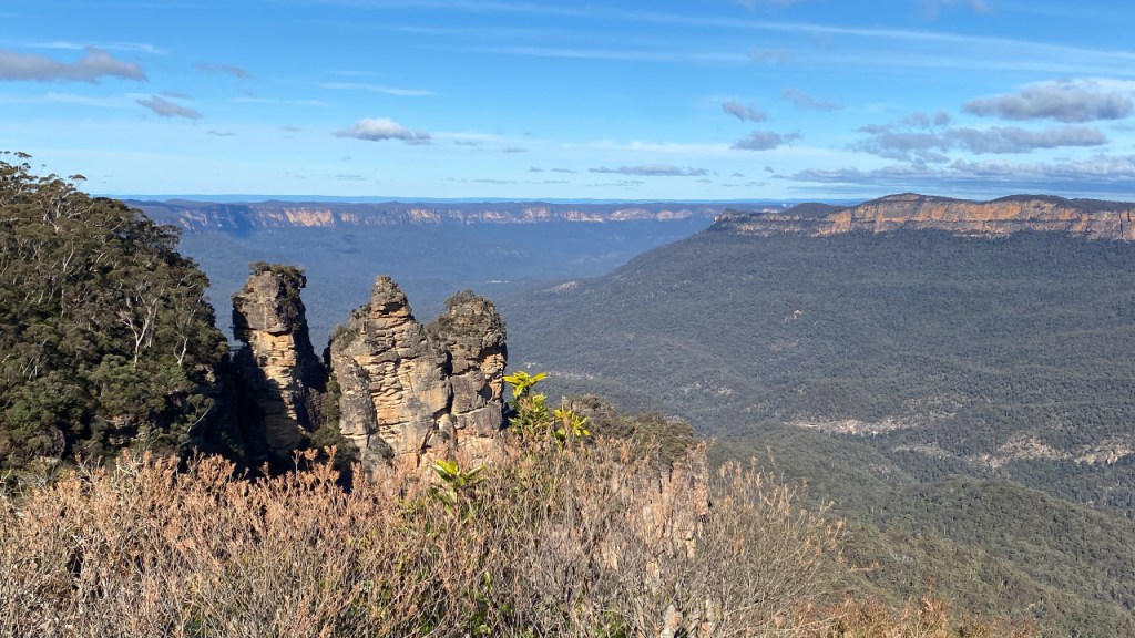 Na een heerlijke week in Sydney is het echte avontuur nu begonnen. Ik ben opnieuw met een camper op stap en heb een redelijk losse planning. De enige echte vaste datum is 8 juli. Dan moet ik in Darwin zijn (in het hoge noorden) want ik heb een tourtje geboekt naar Arnhem Land om daar kennis te maken met de Aboriginal-cultuur. De eerste 2 dagen strijk ik neer in Katoomba, het toeristische hart van de Blue Mountains. Naast het fenomenale uitzicht dat je hier op diverse plekken hebt, is het ook de plek om een paar mooie watervallen te bezoeken, een ritje te maken in de Scenic Skyway (heb ik niet gedaan), de bekendste rotsformatie de Three Sisters te bekijken en mooie lange wandelingen te maken. Ik heb een campingplek gereserveerd vlakbij de Katoomba Falls, dus ik loop zó vanaf de camping de natuur in. Mijn eerste camping dus van deze reis en wat heerlijk: die ruimte! Ik moet terugdenken aan mijn reis door Zuid-Italië waar ik vaak behoorlijk moest manoeuvreren om de camper netjes in te parkeren of door smalle straatjes te rijden. Hier zet ik hem neer zonder er veel moeite voor te hoeven doen en rij ik over vaak zulke brede straten dat er meerdere campers naast elkaar zouden kunnen rijden. Maar er is hier natuurlijk ook ruimte te over.