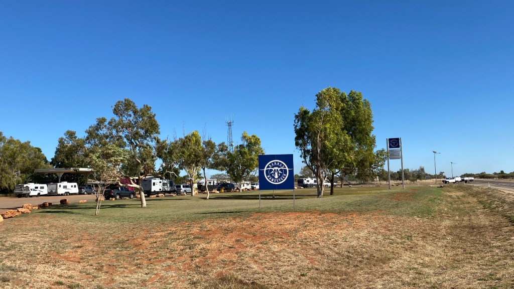 Van Camooweal naar Threeways waar je op de Stuart Highway terecht komt is het zo’n 450 km en de enige mogelijkheid om te tanken is bij de Barkly Homestead. Dit is een roadhouse (“wegrestaurant”) dat ongeveer op de helft ligt en dat is dan ook de plek waar ik overnacht deze keer. De Barkly Highway is saai te noemen. Er is dus niets te ontdekken onderweg, behalve 18 km na Camooweal het bord dat je de Northern Territory binnenrijdt. En dus stopt iedereen hier want dat is een grote afwisseling in het landschap! Het waait behoorlijk hard en dus heb ik nog meer last van de roadtrains die langsrazen. Maar verder dus vooral saai en gelukkig heb ik mijn luisterboeken en podcasts om nog een beetje afleiding te hebben. Ik rij zo rond de 100 km per uur hoewel je hier 130 mag rijden. Van mijn leven niet! Deze 2-baansweg is geen snelweg. Ik vind het onverantwoord. Zeker als je weet dat de truckies (zoals ze hier de vrachtwagenchauffeurs noemen onderweg een film zitten te kijken). Op het laatste stuk zit ik toch wel weer even een beetje ongerust achter het stuur want de benzine gaat weer hard. Gelukkig red ik het ook deze keer en na getankt te hebben zoek ik een plaatsje op de camping. Het is al behoorlijk druk en gelukkig vind ik nog een plekje op redelijke afstand van de generator, want die maakt zoals gebruikelijk behoorlijk veel lawaai. De homestead is een van de meest afgelegen plekken in Australië en is volledig zelfvoorzienend. Ze hebben dan ook een eigen airstrip voor aanleveren van goederen en voor noodgevallen. Maar dat betekent dat de prijzen er ook naar zijn. De benzineprijs is meer dan het dubbele van wat het is in de omgeving van Sydney en een biertje kost AUD 9.50 (zo ’n € 6-7). Met mijn biertje en een boek (ipad) ga ik bij een stel aan tafel zitten (wel toestemming gevraagd natuurlijk). Van lezen komt niet zoveel want de man begint te kletsen. En dat houdt niet op. Hij is vol van zijn werk (een “truckie”) en heeft een eigen transportbedrijf. Wel leuk om e.e.a. over dit werk te horen en ook dat Outback Truckers van Discovery Channel larie is (in de ogen van de chauffeur).