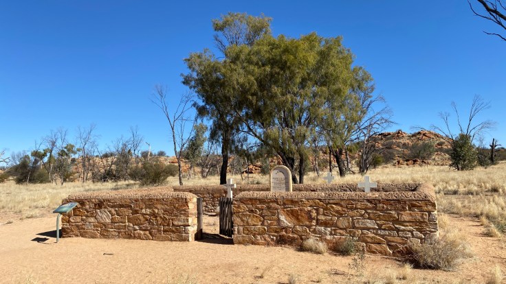 Het oude telegraafstation, dat net buiten Alice ligt, kent een mooie historie. Niet alleen was het een belangrijke schakel in het tot stand komen van de verbindingslijnen tussen Australië en de rest van de wereld, ook heeft het b.v. dienst gedaan als een opvangcentrum voor kinderen van de “lost generation”. Deze Aboriginal kinderen werden weggehaald bij hun ouders om hen een “blanke” opvoeding te geven. Ik maak een wandeling in de omgeving van het station en loop daarbij langs een oud kerkhof met een stuk of zes graven (bewoners/medewerkers van het station). Een hele leuke wandeling, niet zo lang maar met een prachtig uitzicht vanaf de top van een heuvel.