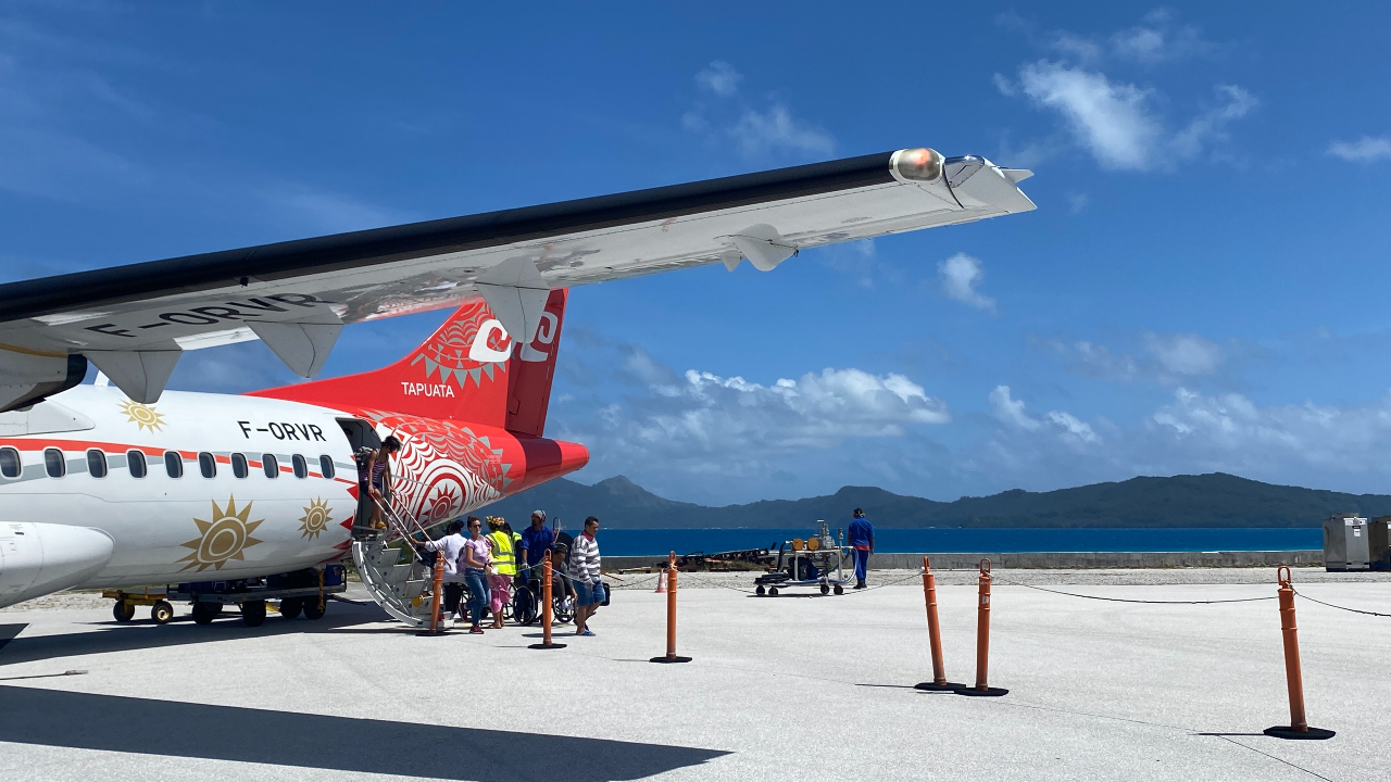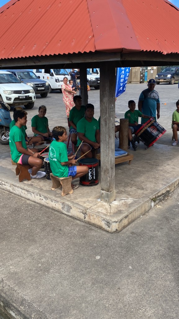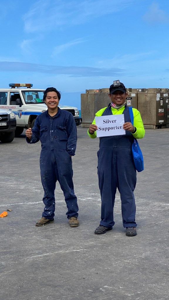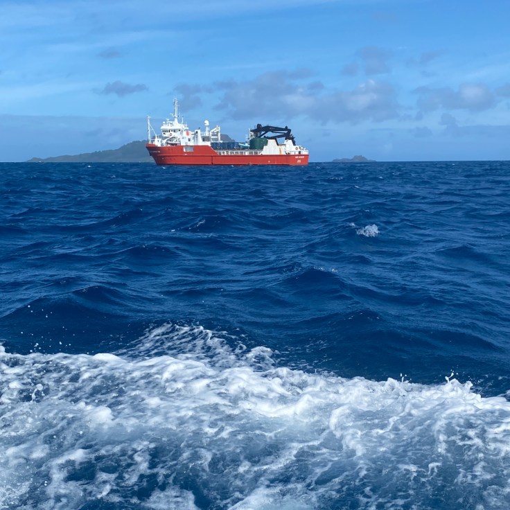 Vandaag is het zover, we gaan naar Pitcairn! Om daar te komen moesten we eerst dus naar Tahiti in Frans Polynesië. Maar de boot naar Pitcairn vertrekt vanaf Mangareva, een eilandje dat nog steeds bij Frans Polynesië hoort maar zo’n 1.400 km naar het zuid-oosten ligt. Het is ongeveer 5,5 vliegen met een tussenstop op Hoa. We zijn al heel vroeg op het best leuke vliegveld. De rijen zijn gelukkig kort, er is een lekker muziekje en inchecken en security zijn een fluitje van een cent. Alleen de koffie is waardeloos. Hoa is niet meer dan een atol met een hele smalle strook land, of eigenlijk honderden stukjes land in een kring. Je vraagt je af waar mensen wonen en wat mensen hier doen die hier op vakantie komen. We kunnen het “luchthavengebouw” vrij in en uit lopen en de incheckbalie is een verhaal op zich waard. We moet hier een half uur wachten omdat het vliegtuig moet bijtanken. Op Mangareva is het goed geregeld. Je loopt met je koffer gewoon de “vertrekhal” uit de ferry op die ons in ongeveer een half uur naar het eiland brengt. In de haven daar worden we weer begroet met muziek en we krijgen bloemenslingers omgehangen. 2 bemanningsleden van de Silver Supporter (de vrachtboot, die 4x per jaar vanaf Nieuw-Zeeland vertrekt met voorraden voor de bewoners van Pitcairn) staan ons in de haven op te wachten. Het blijkt dat we de enige 2 toeristen aan boord en dus op Pitcairn zullen zijn. We moeten echter eerst een Covid-test doen en een stempel in ons paspoort halen. Daarvoor moeten we naar het politiebureau. Daar heerst een heerlijk ongedwongen sfeertje. De dienstdoende politieagent loopt in een T-shirt en short rond. Hij moet even zoeken naar het juiste stempel en dan is het zo gefikst. Hij vindt het wel vreemd dat we geen stempel hebben van onze aankomst in Polynesië maar die hebben we niet nodig omdat Polynesië onderdeel van Frankrijk en dus EU is. Eigenlijk hebben we dus ook geen exit-stempel nodig, maar het is wel leuk om dit hier mee te maken. Met een klein bootje worden we naar de Silver Supporter gebracht en daar letterlijk met bootje en al aan boord gehesen. De reis naar Pitcairn kan beginnen!