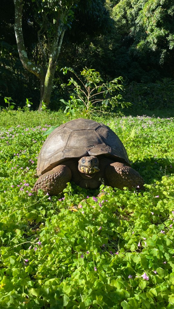 Pitcairn Island vormt samen met de vulkaaneilanden Henderson, Ducie and Oeno het Britse zelfstandige territorium Pitcairn Islands in de Pacific. De eilanden liggen ongeveer halverwege Paaseiland en Tahiti. Het piepkleine eiland Pitcairn, oppervlakte ongeveer 5km2, is het enige eiland dat bewoond is. De ongeveer 45 inwoners wonen voornamelijk in Adamstown, het enige dorpje. Maar ook de hoge kliffen zijn geliefd als woonplaats. De hoogste top is 347 meter en wanneer je rondrijdt op het eiland zijn er altijd hellingen waar je op of af moet. Wandelen is daarmee een uitdaging en de quad is zeker een uitkomst. Er is maar 1 piepklein strandje en dat kan alleen bereikt worden via een lastig pad met wat uitgehakte traptreden (“Down Rope”) een steile helling af. Behalve dit strandje is het hele eiland volledig omgeven door rotsen en steile kliffen. De kust bereik je hier en daar door over rotsen te klimmen of via een steil paadje af te dalen. Het ongetwijfeld mooiste punt is St. Paul’s pool, een natuurlijk zwembad, dat voortdurend wordt gevoed door de zee maar helaas wanneer wij er zijn te gevaarlijk is om ook echt in te zwemmen. De natuur is groen, groen en nog eens groen. Waar je ook maar kijkt zie je de mooiste bomen en bloemen. Het is duidelijk een zeer vruchtbaar gebied en er is dan ook volop fruit om te oogsten. Er worden ook andere gewassen geteeld op de wat minder steile hellingen rondom Adamstown. We zien niet heel veel landdieren, het dierenleven speelt zich vooral af in de lucht en het water. Walvissen trekken hier voorbij, daar zien we er heel wat van, maar ook diverse vogelsoorten en natuurlijk veel vissen in het heldere water. En er is Mrs. T! Zo’n 70 jaar geleden bracht een schipper van een passerende boot 5 schildpadden mee van de Galápagos-eilanden. Mrs. T is de enige die nu nog leeft. En die we gelukkig ook hebben gezien. Ze is gek op de kleine banaantjes die hier overal groeien en het is erg leuk om te zien, dat ze op je af komt als je met de bananen aan komt lopen. Door het ontbreken van grootschalige industrie zou je bijna denken dat hier weinig business is. Maar de schijn bedriegt. Want natuurlijk is het allemaal kleinschalig, maar ook op kleine schaal moet alles functioneren. Dus er is een winkel, een postkantoor, een museum, de internetwinkel voor de souvenirs, de politie, een gevangenis, een kerk, een school (nog wel) en bijna iedereen is wel bezig met een vorm van inkomsten genereren. Want hoewel door de overheid (Verenigd Koninkrijk) subsidies worden verstrekt, moet er extra worden bijverdiend. Dit gebeurt dan vooral in de toeristensector: veel inwoners maken zelf souvenirs (schilderijen, houten voorwerpen, beelden etc.), houden bijen voor de verkoop van honing, of bieden accommodatie aan (zoals Brenda en Mike). Al met al een economie op microniveau en dat op een prachtig eiland waarvan ik hoop dat het de bewoners nog heel lang heel goed zal gaan.