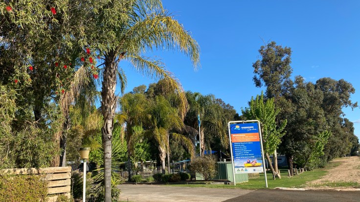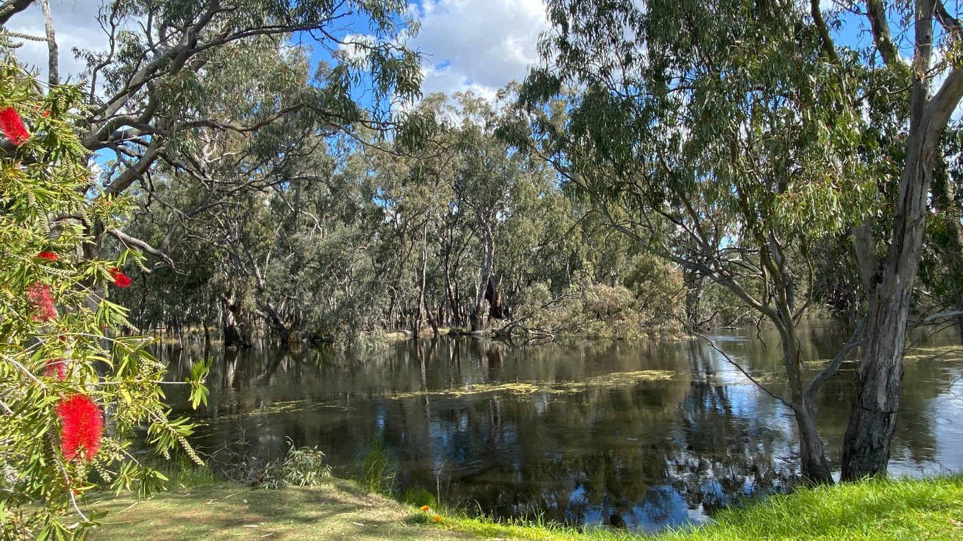 Vanaf vandaag is het zomertijd in Australië. Is het in Nederland altijd al wennen wanneer zomer- of wintertijd ingaan, hier is het helemaal een gedoe. Elke staat hanteert eigen regels en ik ga vandaag van New South Wales naar Victoria en vervolgens naar South Australia. Gelukkig schuift de tijd steeds naar achteren hoe verder ik naar het westen kom, dus ik heb vandaag extra tijd. Ik kom weer een beetje in mijn “biotoop”: lekkere rustige, rechte, lange weg, het land wordt vlakker en ik zie al een beetje rode grond. Dit is het voor mij. Alles is wel erg groen door de grote hoeveelheden regen van de afgelopen weken. Dat heb tijdens vorige reizen nooit zo gezien. Ook de rivieren zijn behoorlijk gevuld en. Ik ben niet de enige die dit opvalt, want je ziet her en der ook de Australiërs genieten van de mooie aanblik van al dat water. Hoewel die grote hoeveelheden water op andere plekken tot grote overlast leiden. Ik hou ook voortdurend de website in de gaten waarop wegafsluitingen worden aangegeven. Ik ben er net een gepasseerd, dus daar was ik gelukkig net op tijd voorbij. Wanneer ik op de camping in Mildura aankom, geniet ik van het heerlijke weer. Dat is echt wel lang geleden dat ik lekker een poosje in het zonnetje buiten heb kunnen zitten.