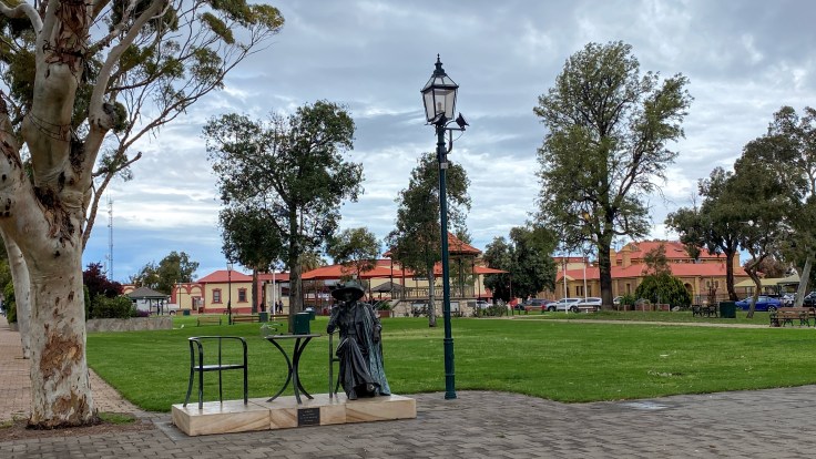Bij de grens tussen New South Wales en South Australia wacht mij een onplezierige verrassing. Ik heb tomaten in mijn koelkast en die mogen de staat niet in. Ik ben al diverse checkpoints gepasseerd maar er werd nooit gecontroleerd. Hier dus wel. Ik moet uit de rij, en mee naar een kamertje waar me haarfijn wordt uitgelegd wat ik wel en niet had moeten doen. Omdat ik een toerist ben krijg ik gelukkig geen boete, maar wel een waarschuwing. gelukkig maar want de boete is zo’n slordige € 245,–! En dit is de dag van de controles. Want net voor Port Augusta is er ineens een alcoholcontrole. Voor mij de eerste keer in mijn leven dat ik moet blazen. Maar ik heb natuurlijk niks gedronken dus ik kan gewoon verder. De agent heeft wel moeite om mijn rijbewijs te lezen en vindt wel dat ik een behoorlijk eind van huis ben. Dat klopt 😄!