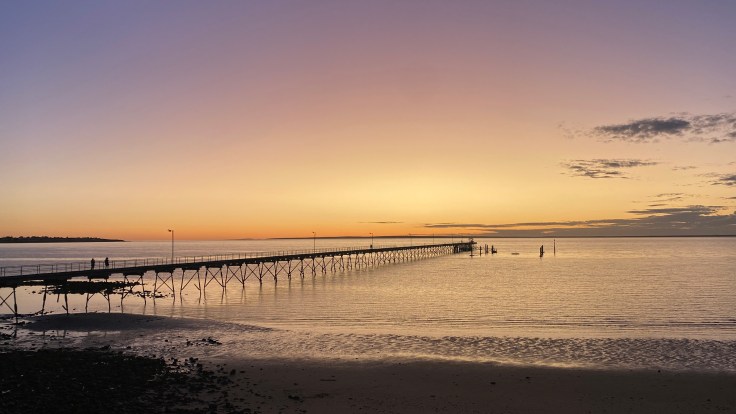 Het is opvallend hoe groot het verschil is tussen de gebieden ten oosten en westen van Port Augustus. Toen ik hier aankwam vanuit het oosten reed ik nog zó vanuit de heuvels de stad in. En nu ik er weer uit rij is het weer zo goed als plat met rechte lange wegen. En steken de mensen de hand of vingers weer op als groet. De rit over de Eyre Highway, die me door de Nullarbor zal voeren, spreekt ook anderen duidelijk aan. Ik zie een heel team dat Coast to Coast fietst (actie t.b.v. Kinderen in nood). Ik zie een aantal motorrijders en ook zelfs fietsers die deze highway af fietsen. Respect. En een grote truck met Indian Pacific Canon Ball Racing. In Kimba moet je wel stoppen, want dat is het punt waarvan men zegt dat je halverwege Sydney en Perth bent. En je bent in de graanschuur van Australië. Dat kun je ook niet missen, oneindige graanvelden met af en toe een klein dorpje met enorme graansilo’s. Benzine tanken blijft een dure aangelegenheid. De huidige crisis slaat ook hier toe, hoewel ik denk dat in deze regionen de benzine sowieso duur is. Ik ga ineens van AUD 1,80 per liter naar AUD 2,20. In Ceduna heb ik de laatste gelegenheid om nog voorraden in te slaan, want de komende dagen zal ik geen winkels tegenkomen, hooguit een shop bij een benzinestation. Ik neem in ieder geval voldoende water mee en zal onderweg goed opletten, dat ik voldoende benzine tank. Je wilt echt niet zonder water of benzine aan de kant komen te staan. Ceduna zelf is weer een echte outback stad. Gezelligheid is ver te zoeken en je merkt aan de grote hoeveelheid auto’s met caravans, campers etc. dat dit een plek is waar mensen zich voorbereiden op “ de grote tocht” of er net vandaan komen. Het ligt wel mooi aan zee met een pittoreske pier ver de zee in.
