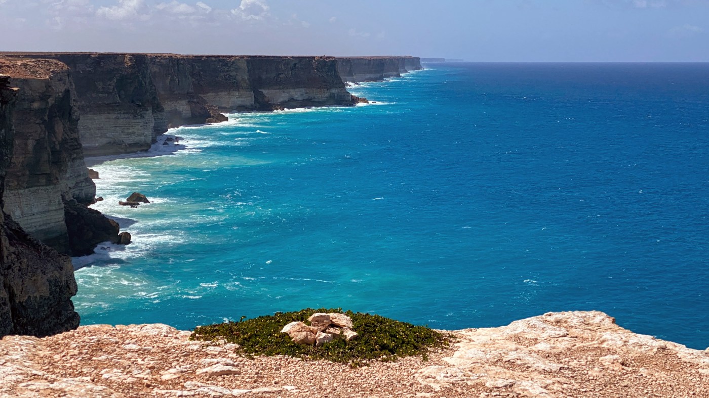 Het Nullarbor Roadhouse ligt op de rand van de Nullarbor Plain en is een mooie plek om te overnachten. Alleen schrik ik me hier helemaal rot van de benzineprijs: AUD 2,62! Dat is nog eens 0,40 ct meer dan bij de vorige. Vlakbij het roadhouse vind je de Head of Bight. Dit is een punt aan de kust waar je een heel mooi uitzicht hebt op de kliffen die aan de rand van de Nullarbor liggen. Ze zijn onderdeel van de Great Australian Bight, een baai die totaal zo’n 1.150 km lang is. Naast dat je in de Head of Bight mooie kliffen kunt bewonderen, vind je er ook walvissen. Dus voordat ik mijn roadtrip hervat ga ik eerst bij de baai kijken. Omdat het seizoen al bijna voorbij is ga ik zonder hoge verwachtingen op pad. En laat ik nou geluk hebben. Een prachtige grote walvis, met een kalf, zwemt voor de kust. En terwijl ik de boardwalk loop om ook de kliffen te gaan bekijken zwemmen ze gewoon mee! Fantastisch. AUD 2,62 voor benzine. Dat is echt verreweg de duurste tot nu toe. Vandaag geniet ik vooral van de mooie uitzichten op de kliffen, de stranden en de zee. En natuurlijk van de boomloze vlakte. En eindelijk zie ik dan eens een hagedis lopen. Het is een “lazy lizard” maar zo lazy is hij niet want voordat ik de auto kan stilzetten om een foto te nemen, is hij alweer verdwenen. Ik overnacht in Border Village. De naam zegt het al, het is precies vóór de grens met Western Australia. En hier is opnieuw een quarantaine checkpoint. Aangezien ik vóór de grens overnacht kan ik nu mooi even alvast informeren bij het checkpoint wat er allemaal wel/niet mee mag. Daarmee hoop ik te voorkomen, dat ik weer een waarschuwing krijg of erger, een boete.