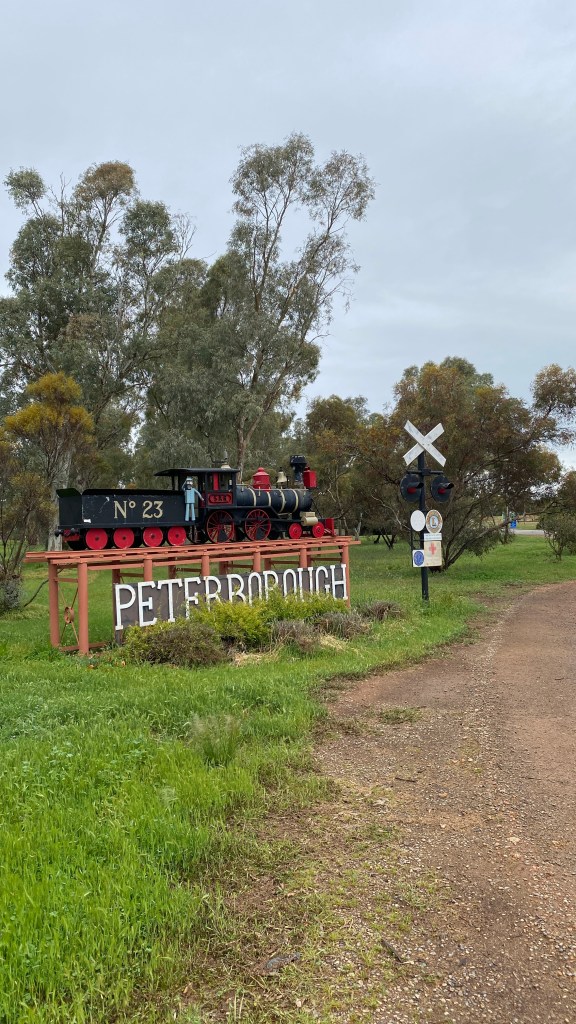 Helaas is het weer niet echt verbeterd en is er geen dolfijn te vinden in de haven van Whyalla. Dus ga ik maar snel weer de weg op. Ik verlaat de Eyre Peninsula en begin aan mijn terugreis naar Sydney. Over 8 dagen moet ik de camper inleveren en het is nog een aardig stukje rijden. Ook zijn er zo her en der overstromingen dus ik moet proberen daar tussendoor te laveren. Ik heb nog 1 dag om mijn definitieve route te bepalen want in Peterborough is een splitsing van wegen, en daar zal ik toch moeten kiezen. Peterborough is niet alleen een kruispunt van wegen, ook de spoorwegen hebben hier al vroeg in het verleden een belangrijke rol gespeeld. Je kunt er dan ook op diverse plekken wagons, locomotieven, musea etc. over het spoorwegennet bekijken. Maar helaas, het regent nog steeds en ik geloof het deze keer wel. Ik ga Netflixen, want geloof het of niet: de camping hier heeft eindelijk eens een fatsoenlijke wifi. Die ben ik nog zelden tegengekomen.