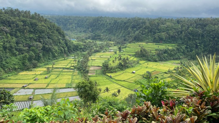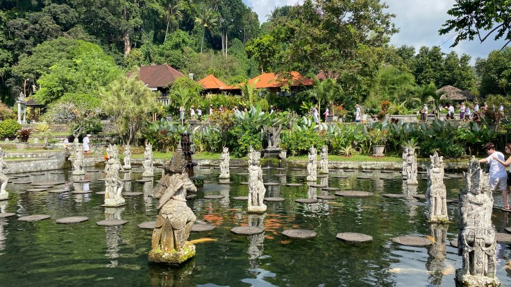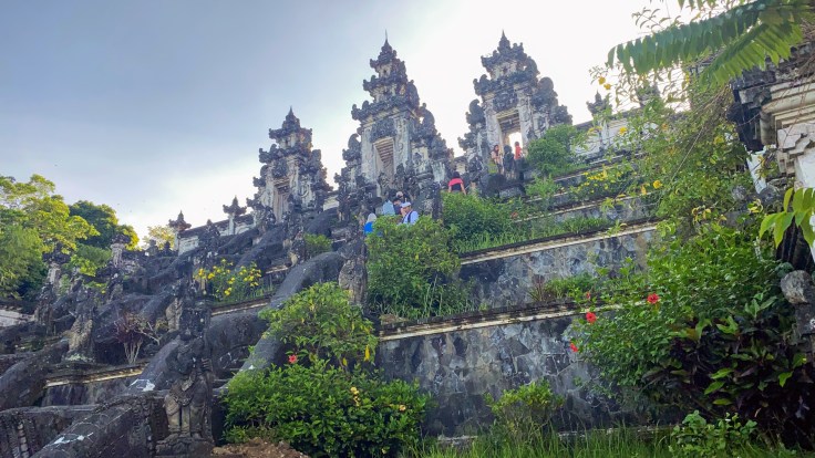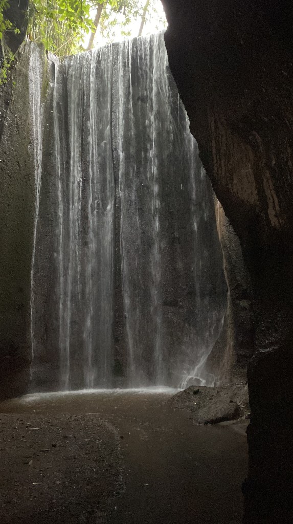 Ter afsluiting van mijn reis strijk ik neer op Bali, het eiland van de goden. Ik kies ervoor om de kuststeden te mijden. Dat zijn vooral “partysteden” en ik wil graag meer meemaken van de Balinese cultuur. Ubud ligt wat meer landinwaarts en is het culturele, spirituele en artistieke centrum van Bali. Het is wel super toeristisch maar heeft toch de eigen aard behouden. Dus vind je hier geen grote hotels, flatgebouwen of grote winkelcentra. Ik logeer in een hotel met 14 kamers en hoewel het aan een van de drukste wegen van de stad is gelegen, is het er een oase van rust. Het ligt iets van de weg af, verscholen achter een eettentje. Het was dus ook even zoeken, maar het is een prachtige plek. Het is een goede uitvalsbasis om de stad te verkennen maar daarover in de volgende blog meer. De eerste paar dagen trek ik er vooral op uit om ook andere stukjes Bali te bezoeken. Dit doe ik met georganiseerde tourtjes, want zelf rijden is voor mij hier geen optie. Het verkeer is echt “killing”. Er rijden veel te veel auto’s en vooral scooters op wegen, die daar eigenlijk niet op berekend zijn. Om niet te veel extra reistijd te hebben vertrekken de meeste tourtjes daarom erg vroeg zodat je de ergste verkeersstroom nog voor bent. Dus zit ik ‘s ochtends soms om 5 uur al in een auto. Gelukkig ben ik altijd al een vroege vogel 😁. Het eiland staat vol tempels, maar om te voorkomen dat ik tempelmoe word, kies ik verschillende uitstapjes. De eerste is wel een tempel, maar die is voor mij vooral interessant door de ligging: op een berg met uitzicht op een vulkaan. De meeste mensen gaan voor een foto tussen de muren, die als toegangspoort dienen (Gate of Heaven). Je ziet er de vulkaan Agung op de achtergrond, maar met lokale mensen op de foto is voor mij de foto beter geslaagd. Andere mooie plekken zijn de valleien met rijstterrassen, die over het hele eiland te vinden zijn. Ook de koninklijke tuinen zijn erg mooi. De plek is een buitenverblijf van een koninklijke familie. Ik heb geen idee welke koninklijke familie dit dan zou moeten zijn, want de informatie hierover was erg onduidelijk. En Bali kende en kent nog steeds talrijke koninklijke families, maar de koninkrijkjes zijn er officieel niet meer (verdwenen ten tijde van de Nederlandse overheersing). Natuurlijk ontbreekt een bezoek aan een waterval niet, dat hoort er bij mij bij en op Bali zijn meerdere watervallen de moeite waard. Ik bezoek niet de hoogste of de waterval met het meeste water, maar een waterval die je alleen kunt bereiken door een behoorlijk stuk af te dalen in een vallei en door een beek te waden. Je komt uit in een half open grot waar je het water over de rand ziet storten. Een prachtige wandeling met een mooie beloning. Alleen jammer dat het behoorlijk regent tijdens deze tocht, maar toch vond ik het zeer geslaagd. De Balinezen zijn ook zeer trots op hun koffiecultuur en dan met name de koffie die ze maken op basis van de uitwerpselen van de luwak. De luwak? Jawel, dat is een civetkat die de vruchten van de koffie eet, daarbij ook de bonen binnenkrijgt en die vervolgens weer uitpoept want die kan hij niet verteren. De poep wordt verzameld en de bonen worden verwerkt. Het wordt gezien als de meest exclusieve en duurste koffie maar heeft inmiddels ook al een slechte naam gekregen. Dit omdat de civetkat vaak niet goed wordt behandeld. De koffieplantage waar ik ben geweest heeft een keurmerk en daarmee wordt bedoeld dat zij de dieren wel goed behandelen. En de koffie is erg lekker. Door het rondrijden buiten Ubud krijg ik wel een mooie indruk van het eiland. En ik vind het prachtig. Je moet door het verkeer heen kijken, want dat is echt vreselijk maar de natuur is overal schitterend. De rijstvelden, de bossen, de bergen, alles is zó mooi en vooral groen. Als je rondwandelt in de bossen, je mag het gerust de jungle noemen, word je begeleid door het geluid van vogels. En dat is dan niet het vrolijke gekwetter dat ik in Australië meestal hoorde. Nee, horen en zien vergaan je hier soms door het lawaai dat de vogels maken. En dan zijn er ook nog de prachtige kleuren van al die bloemen en vruchten. Een waar paradijs.