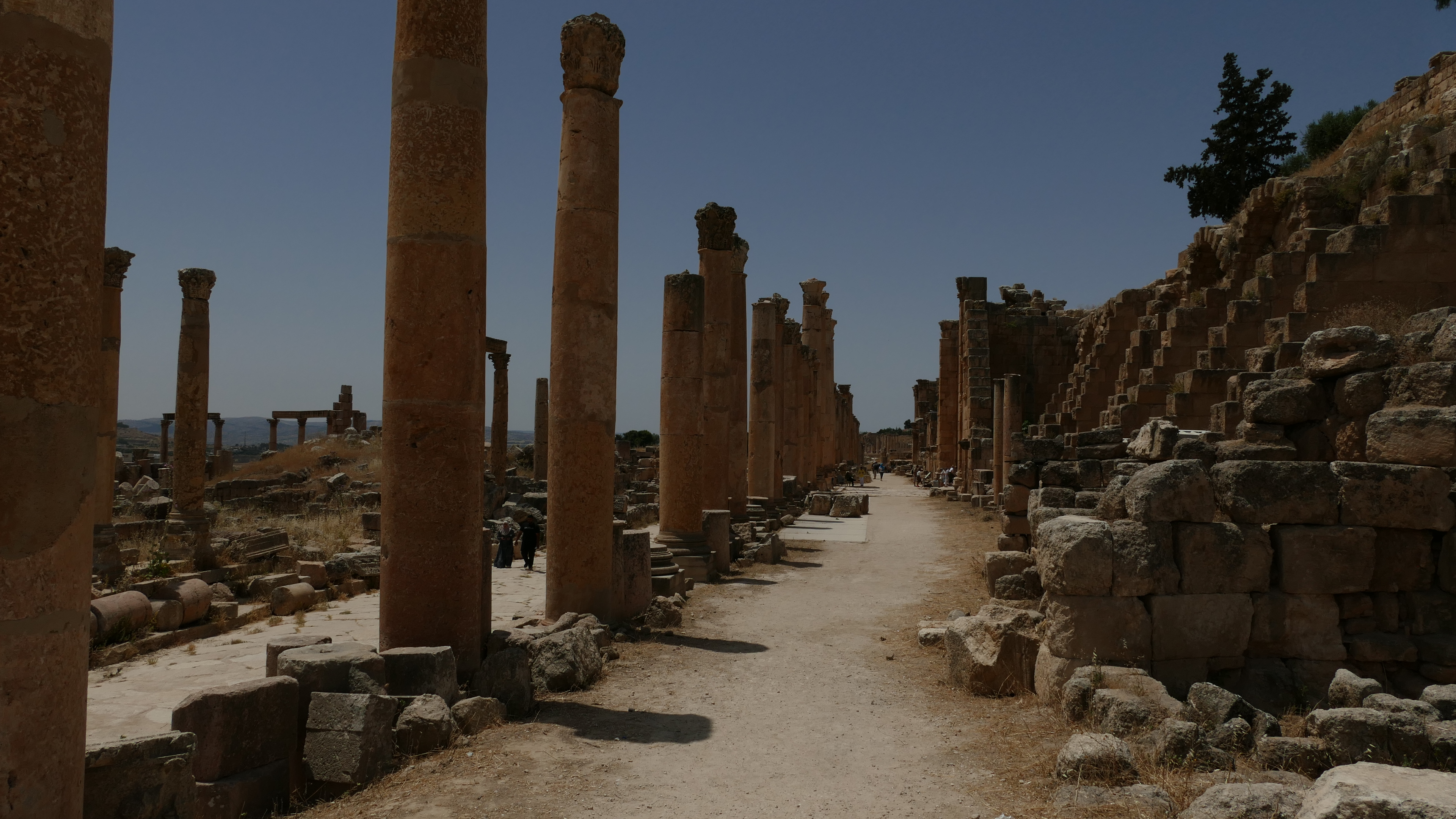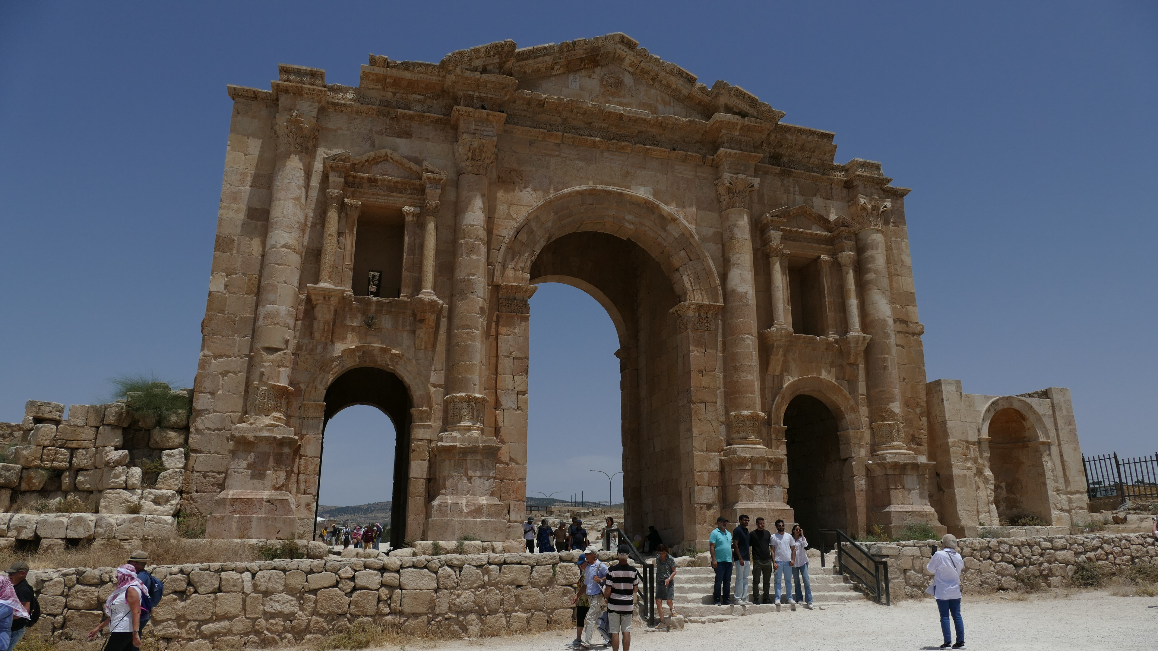 Jerash was een belangrijke Grieks-Romeinse stad die haar hoogtijdagen kende in de 1e en 2e eeuw na Christus. Het is nu natuurlijk veranderd in een verzameling ruïnes maar er zijn nog hele mooie en herkenbare gebouwen te zien. De poort van Hadrianus, je raadt het al, werd vernoemd naar keizer Handrianus die de stad heeft bezocht. Mijn persoonlijke hoogtepunten om te zien zijn het Romeinse theater en de Cardo Maximus, de belangrijkste straat met daaraan nog mooie overblijfselen van tempels en fonteinen.