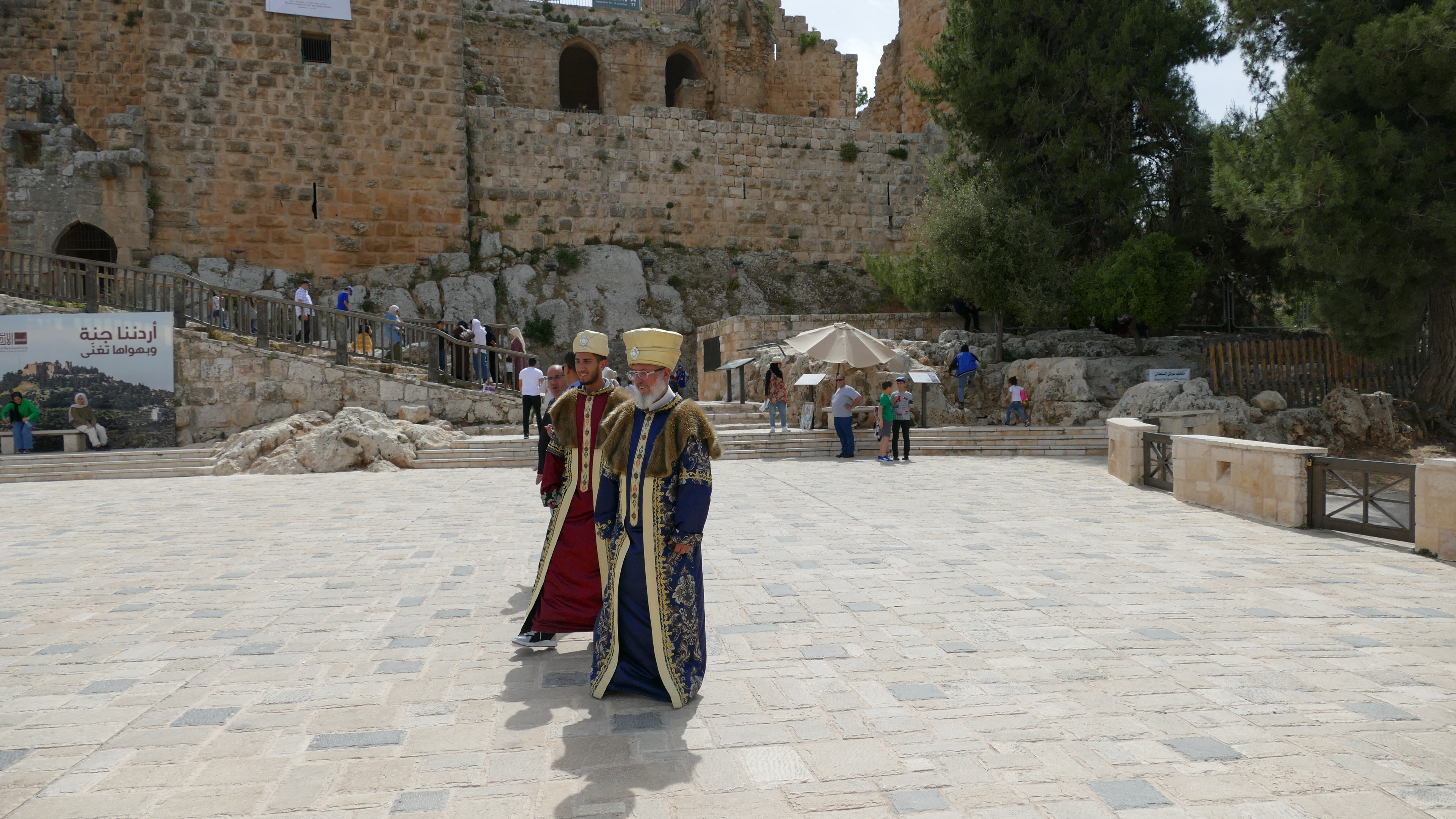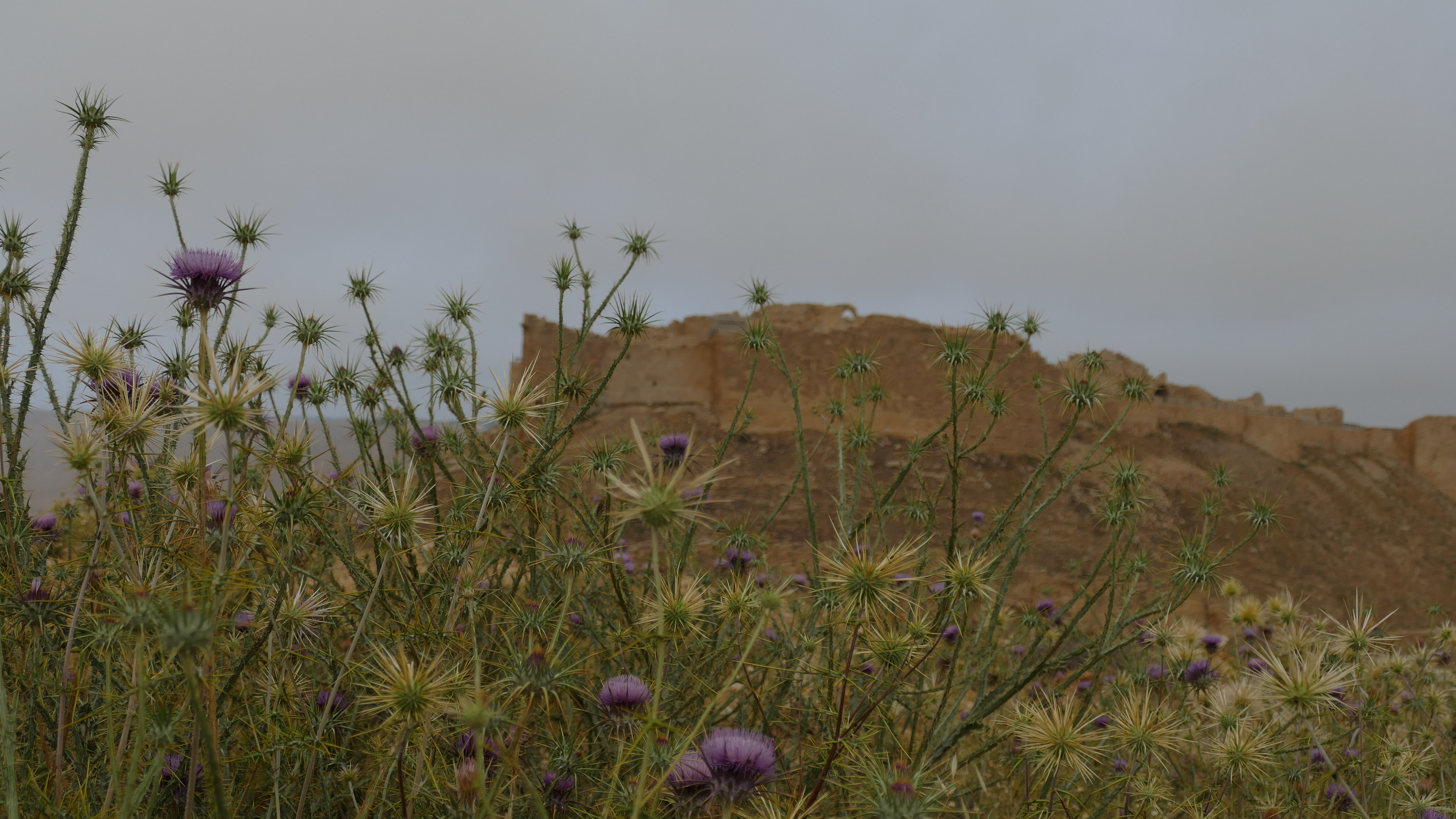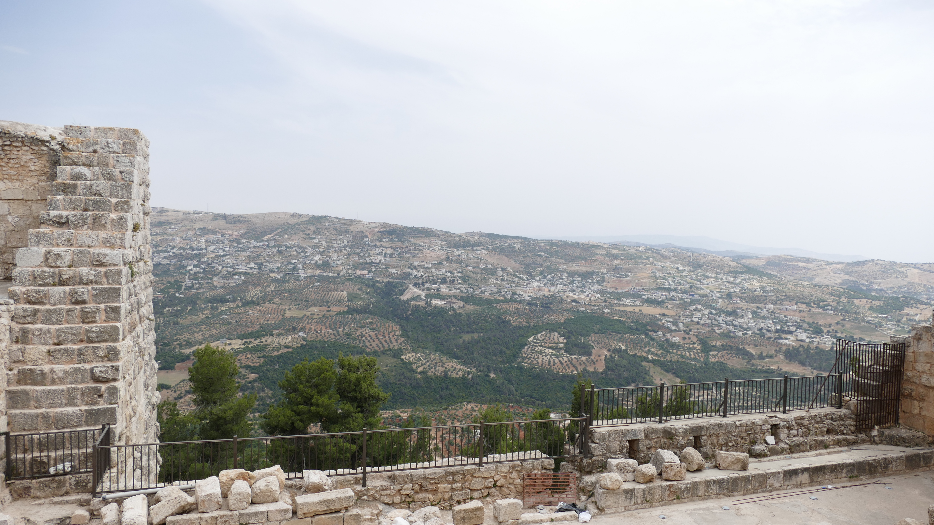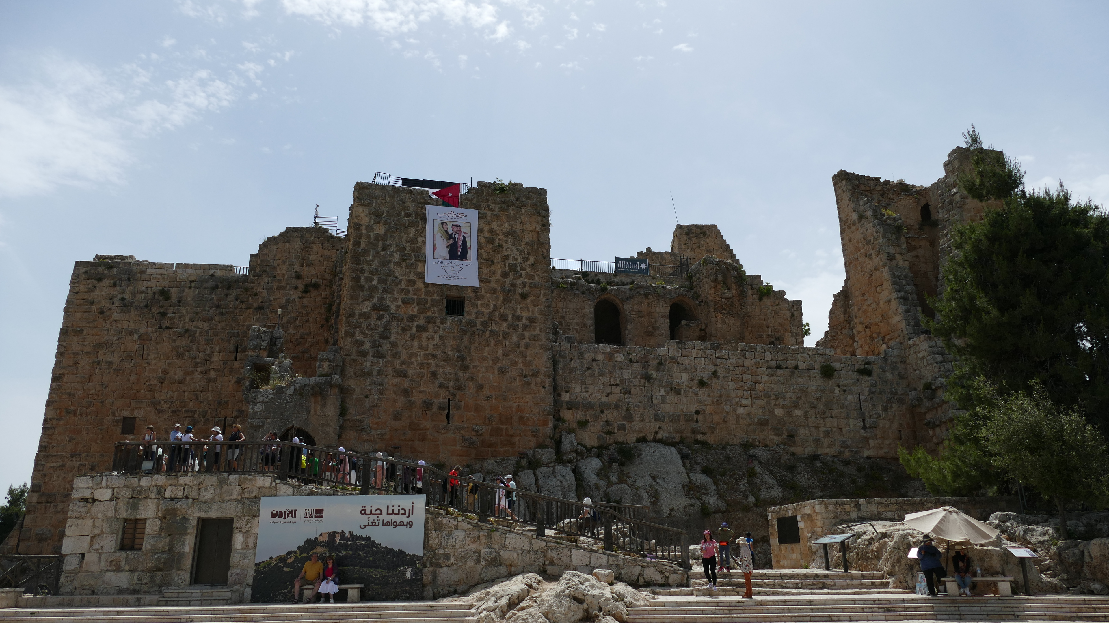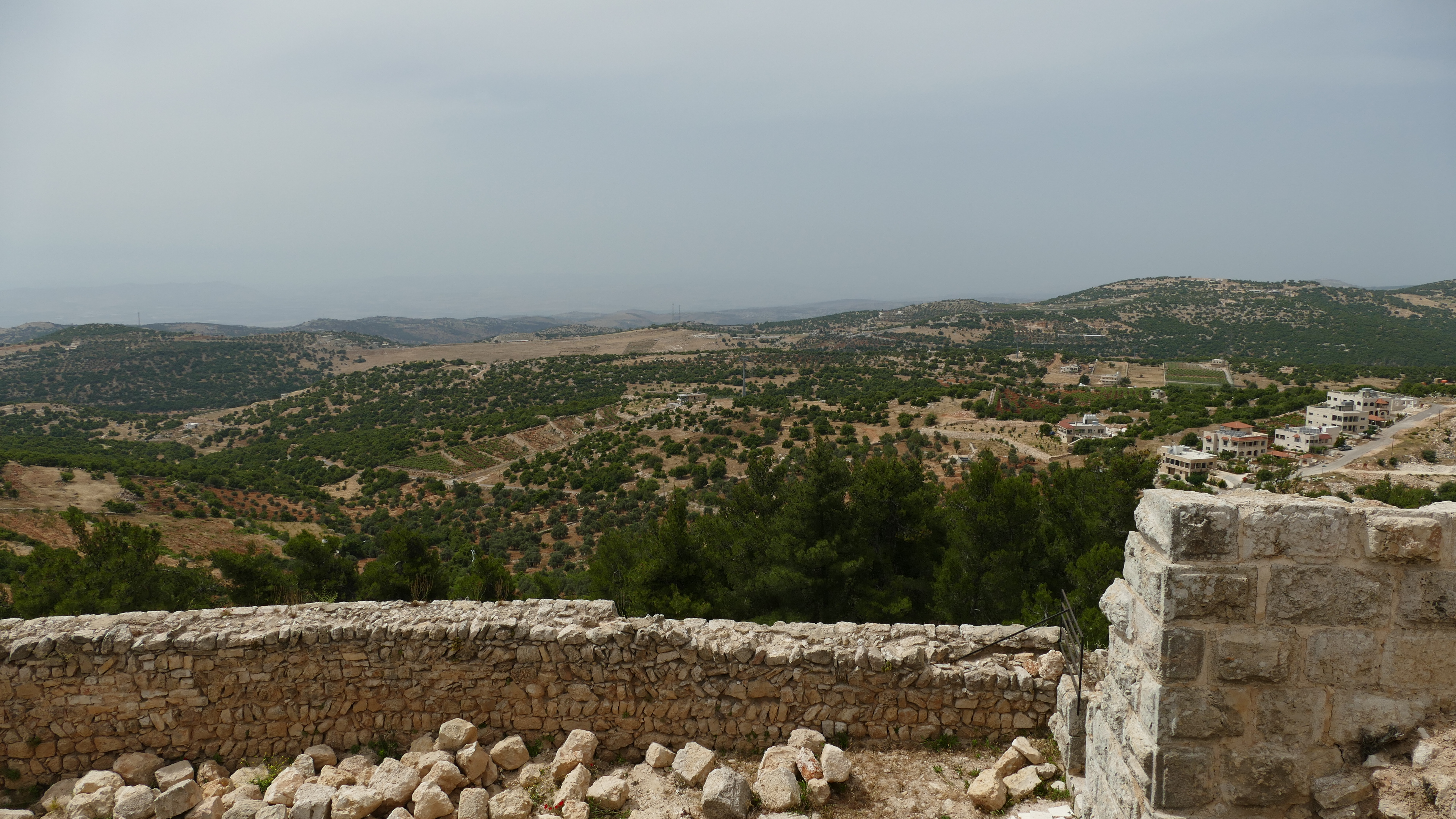 Het kasteel van Ajloun is gebouwd in de 12e eeuw op een plek van waaruit de Bedoeïnen in de gaten konden worden gehouden. Zij hadden enorme tentenkampen aan de andere kant van de Jordaanvallei opgezet. De Bedoeïnen hadden zich aangesloten bij de Kruisvaarders en vormden dus een gevaar voor de Moslim-heersers in dit gebied. Het kasteel oogt nog steeds heel imposant ook al is dit natuurlijk ook een ruïne. Maar je kunt nog wel zien, dat hier een prachtig kasteel heeft gestaan. Helaas is de lucht te bewolkt om ver te kunnen kijken, want je zou vanaf deze plek de Jordaanvallei en Palestina moeten kunnen zien.