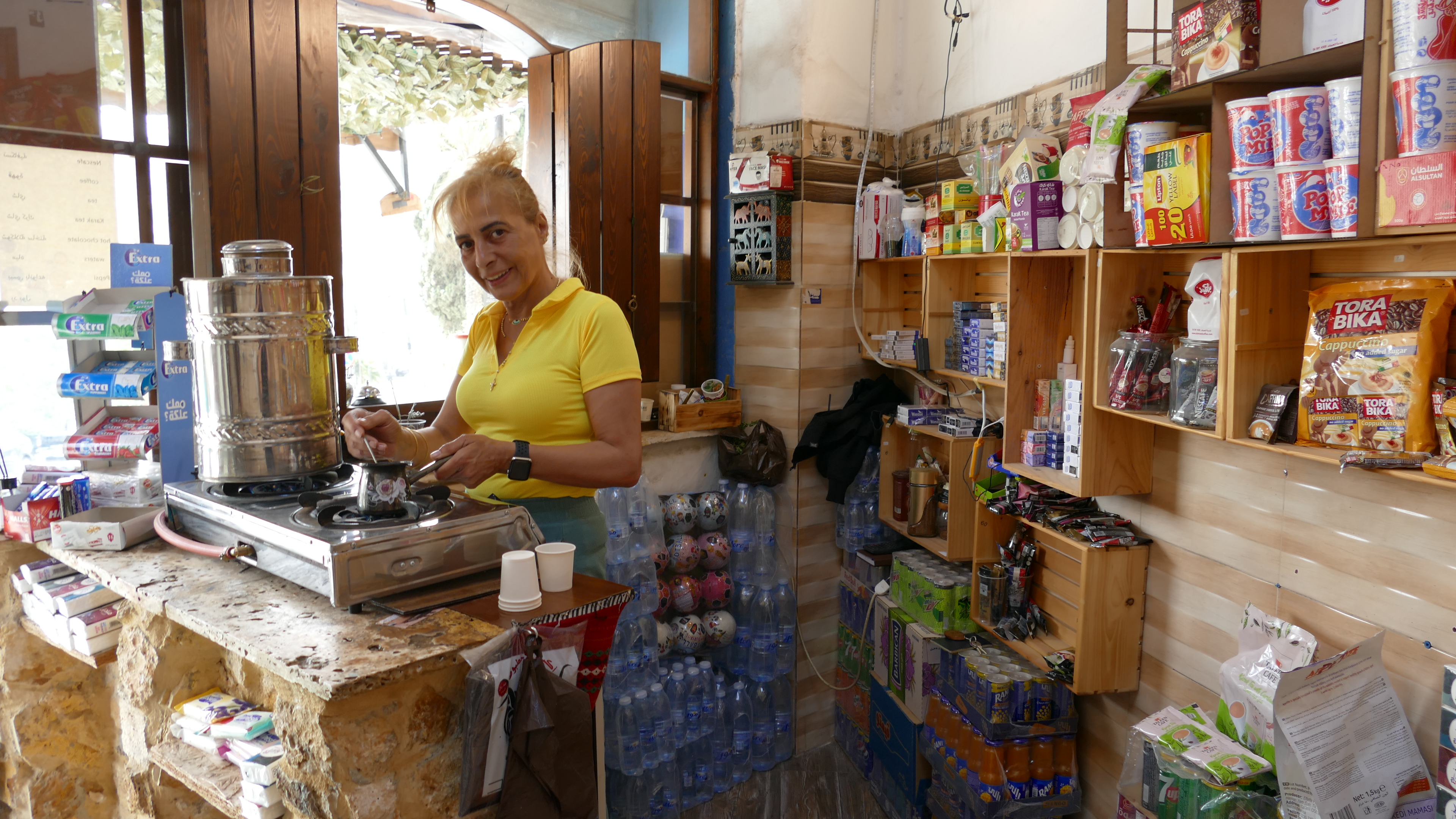 Amman is gebouwd op 7 heuvels en op de hoogste daarvan is een citadel gebouwd met als belangrijkste bouwwerk de tempel van Zeus. Vanaf het complex heb je een 360 graden view over de stad met daarin o.a. het Romeinse theater. Aansluitend aan dit bezoek duiken we de binnenstad van Amman in. Een drukke, rommelige stad, met veel verkeer, kleine winkeltjes, moskeeën, soukhs en alles wat er bij een Arabische stad hoort. Ik ga echter op zoek naar het andere Amman en duik de zijstraatjes in. Daar zie ik weinig toeristen rondlopen maar des te meer lokale mensen die druk zijn met hun dagelijkse dingen. Ik geniet hiervan en word helemaal blij wanneer ik een prachtig klein koffietentje ontdek. Gezien de warmte en het vele klimmen tijdens mijn wandeling zie ik er klaarblijkelijk nogal verhit uit want ik word begroet met “Hello, come and sit down. Do you want a fresh drink?”. En vervolgens ontstaat er een leuk gesprek met de eigenaresse van de tent, komen haar dochter en zuster erbij en kletsen we totdat ik helaas weer moet vertrekken (de bus wacht…).
