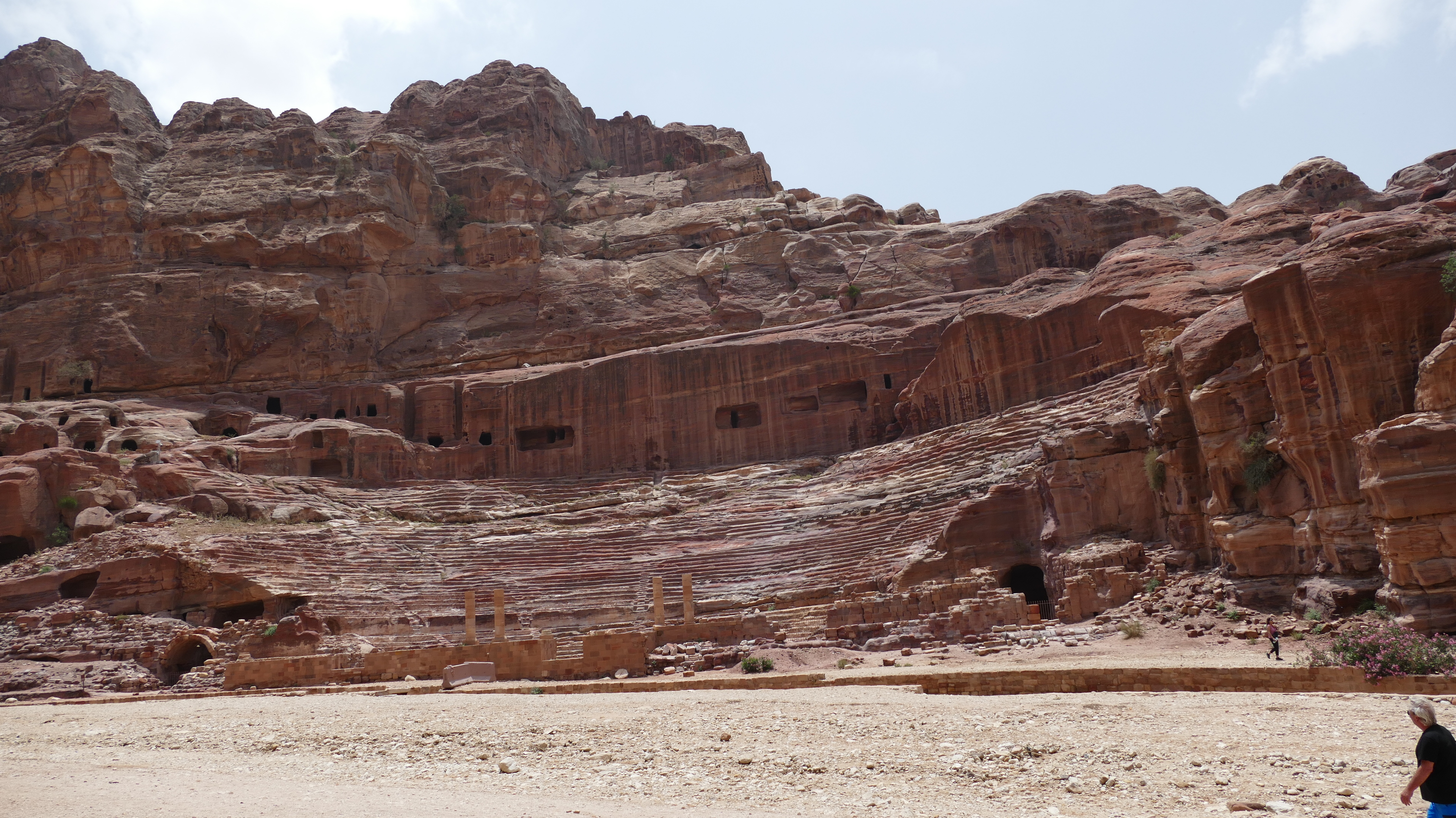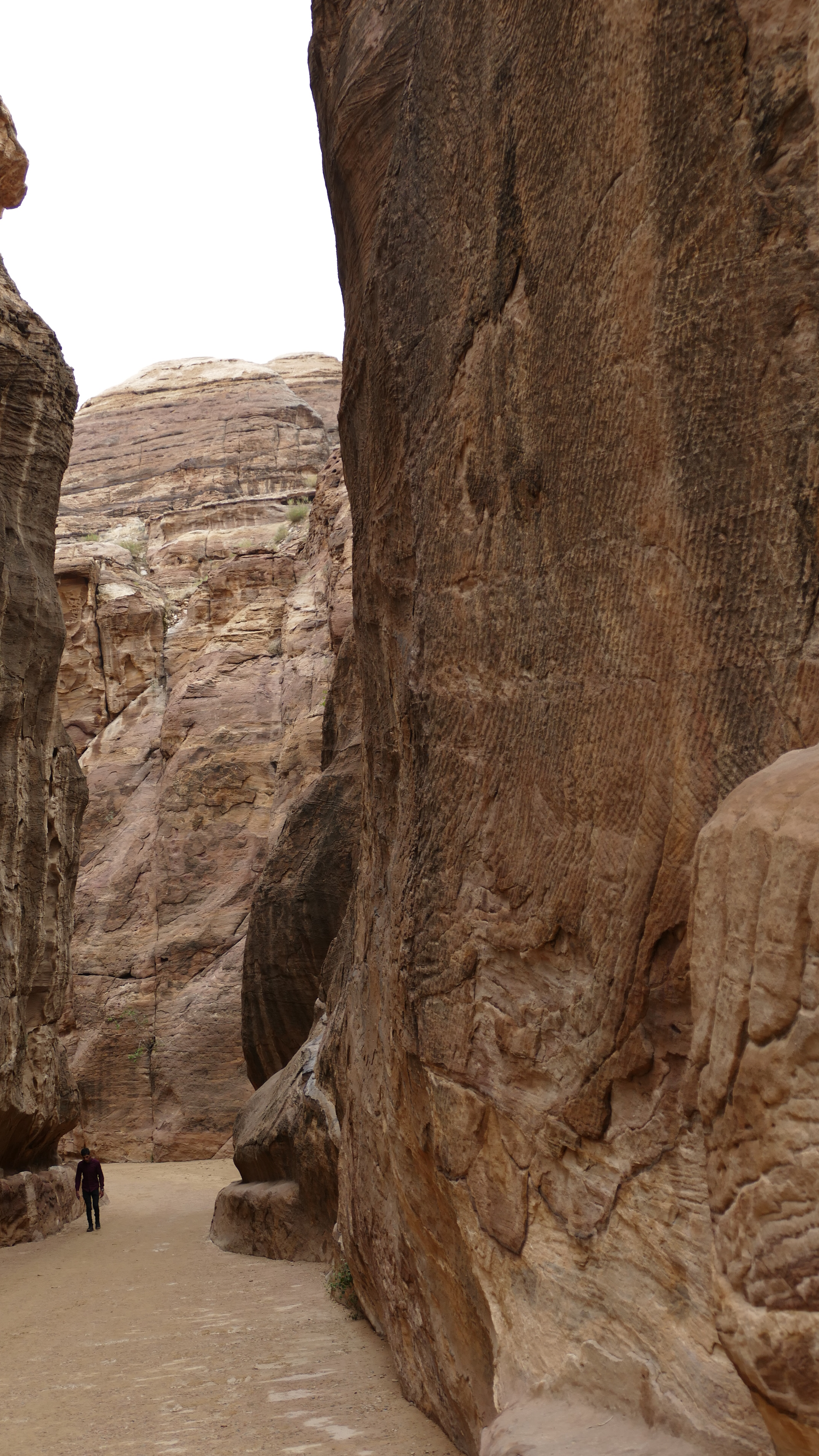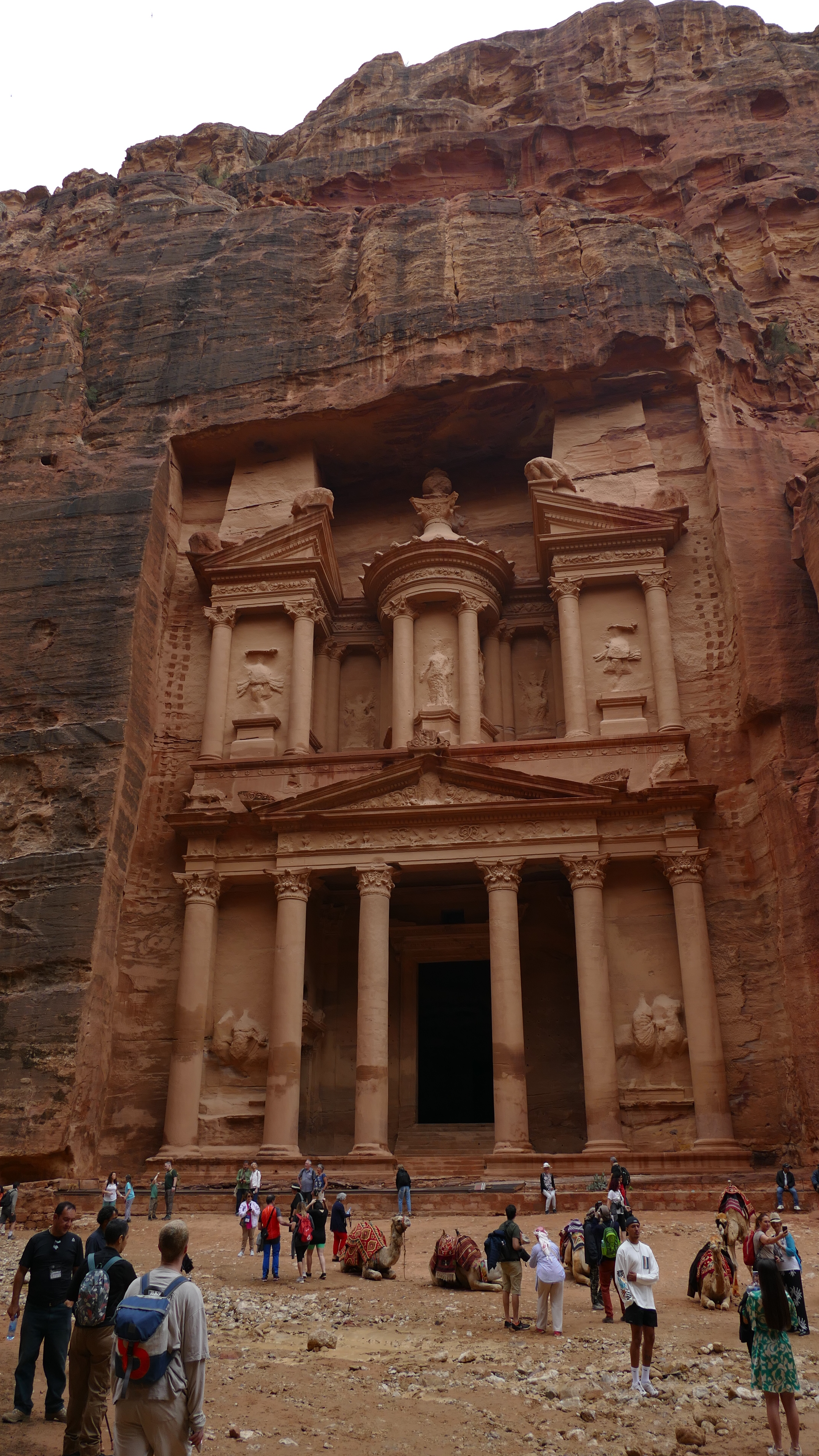Kippenvel. Dat krijg ik op het moment dat ik de kloof in loop, richting de schatkamer van Petra. Deze kloof heb ik al zo vaak op allerlei verschillende manieren in de media gezien, maar het moment dat je er daadwerkelijk inloopt is niet te beschrijven. Het bezoek aan deze kloof met daarachter de oude stad Petra is een jarenlang gekoesterde wens die nu werkelijkheid is geworden. De 1,5 km lange wandeltocht is puur genieten met voortdurend wisselende beelden in het spel tussen zon en schaduw, kleuren van de rotsen en de lucht. Af en toe ben je op sommige plekken (bijna) alleen en dat zijn de mooiste momenten. Aan het einde van de kloof wacht de schatkamer. Deze schatkamer is eigenlijk geen schatkamer, zo leer ik van onze gids Moawia, maar een graftombe. En wat voor een! Petra is echter meer dan deze gratombe, dus lopen we urenlang door de stoffige straten en paden van wat voor de Nabateeërs ooit een hele belangrijke stad aan een handelsroute was, al ver voor onze jaartelling begon. Een heerlijke dag en gelukkig is Petra in het echt nóg mooier dan ik me ooit had kunnen voorstellen.