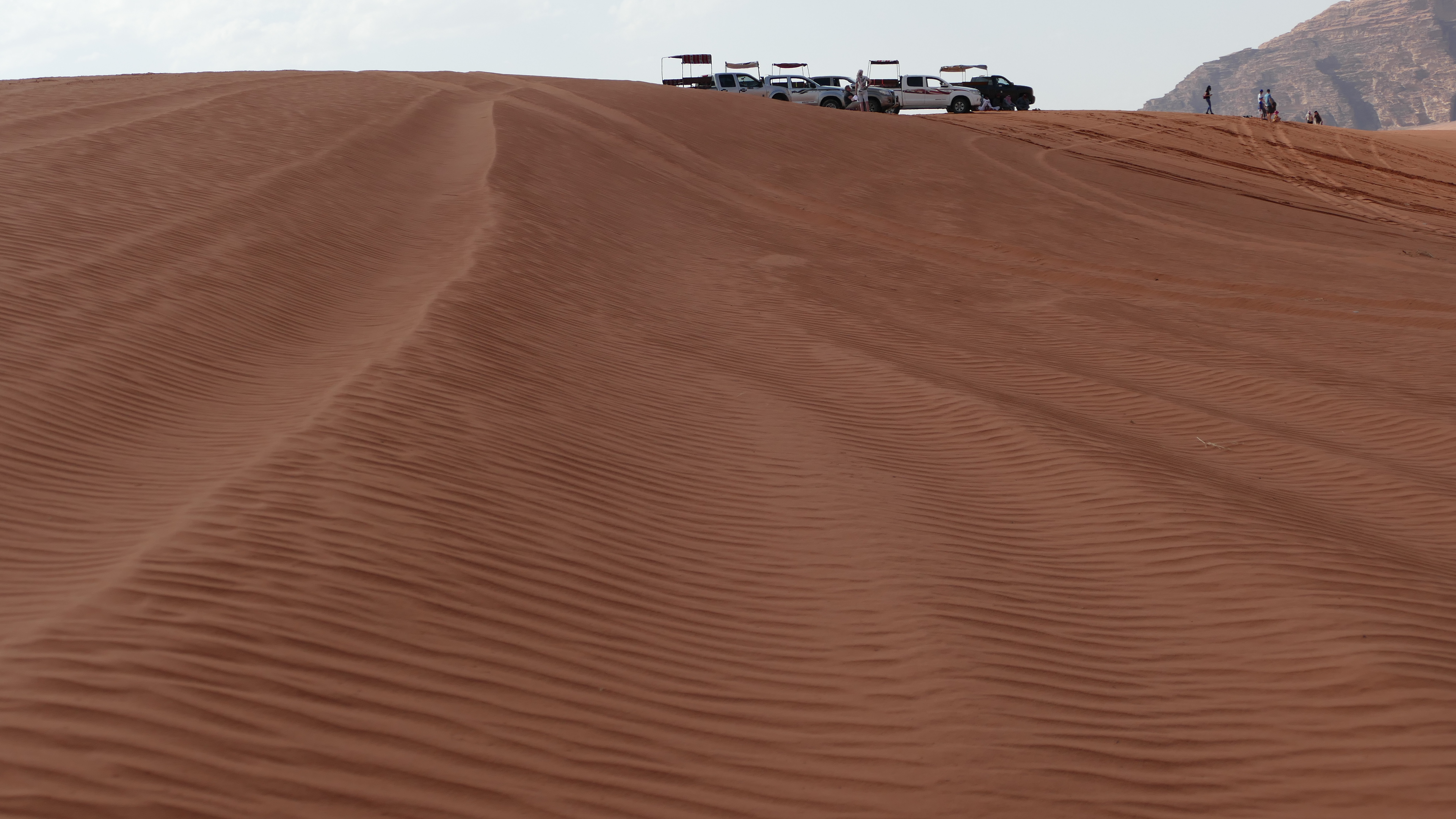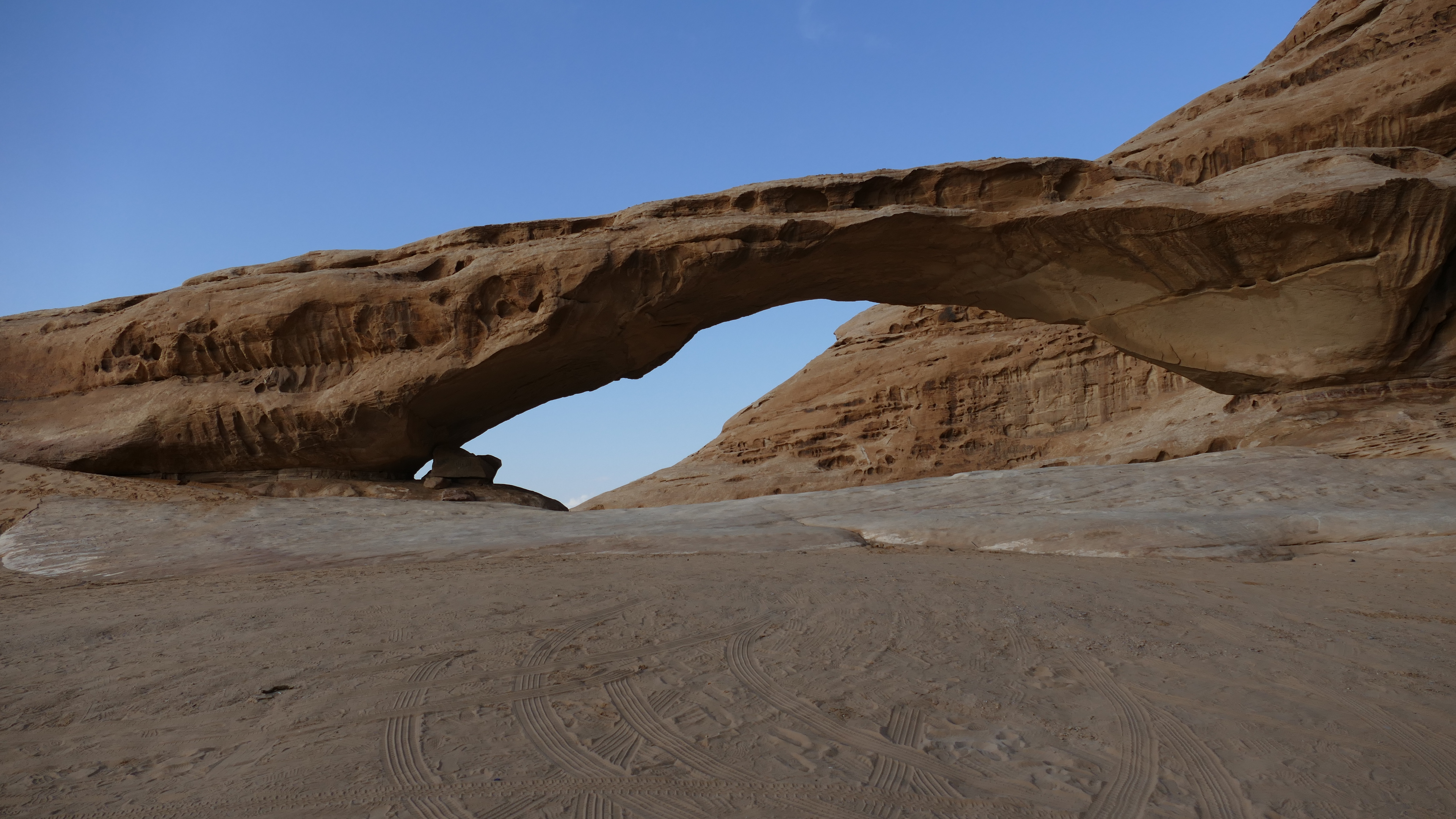Of ik Wadi Rum de mooiste woestijn ter wereld vind, zoals wordt beweerd, weet ik niet maar mooi is hij zeker. Eigenlijk is het geen woestijn maar een drooggevallen vallei, die zich gevuld heeft met zand dat door erosie van de rotsen is gekomen. Er is weinig begroeiing en de schoonheid zit vooral in de grillig gevormde rotsen en rotsformaties. Na Petra is dit de grootste toeristische attractie van Jordanië en het aantal “tenten”kampen is dan ook niet te tellen. Ik heb weinig echte tenten gezien en ook wij slapen in een klein bungalowtje waarvan de muren bedekt zijn met tentdoek en alleen het dak een echt tentdak blijkt te zijn. In de tent is zelfs een badkamer, dus slapen in de woestijn heeft hiermee een andere dimensie gekregen dan wat mijn ervaringen tot nu toe hiermee zijn. Maar, het is er prachtig en de jeepsafari van een aantal uren die we met zijn allen maken is geweldig. We drinken thee bij de Bedoeïnen, bekijken de Burddah rotsbrug en genieten van een prachtige zonsopgang. Opnieuw another day in paradise!