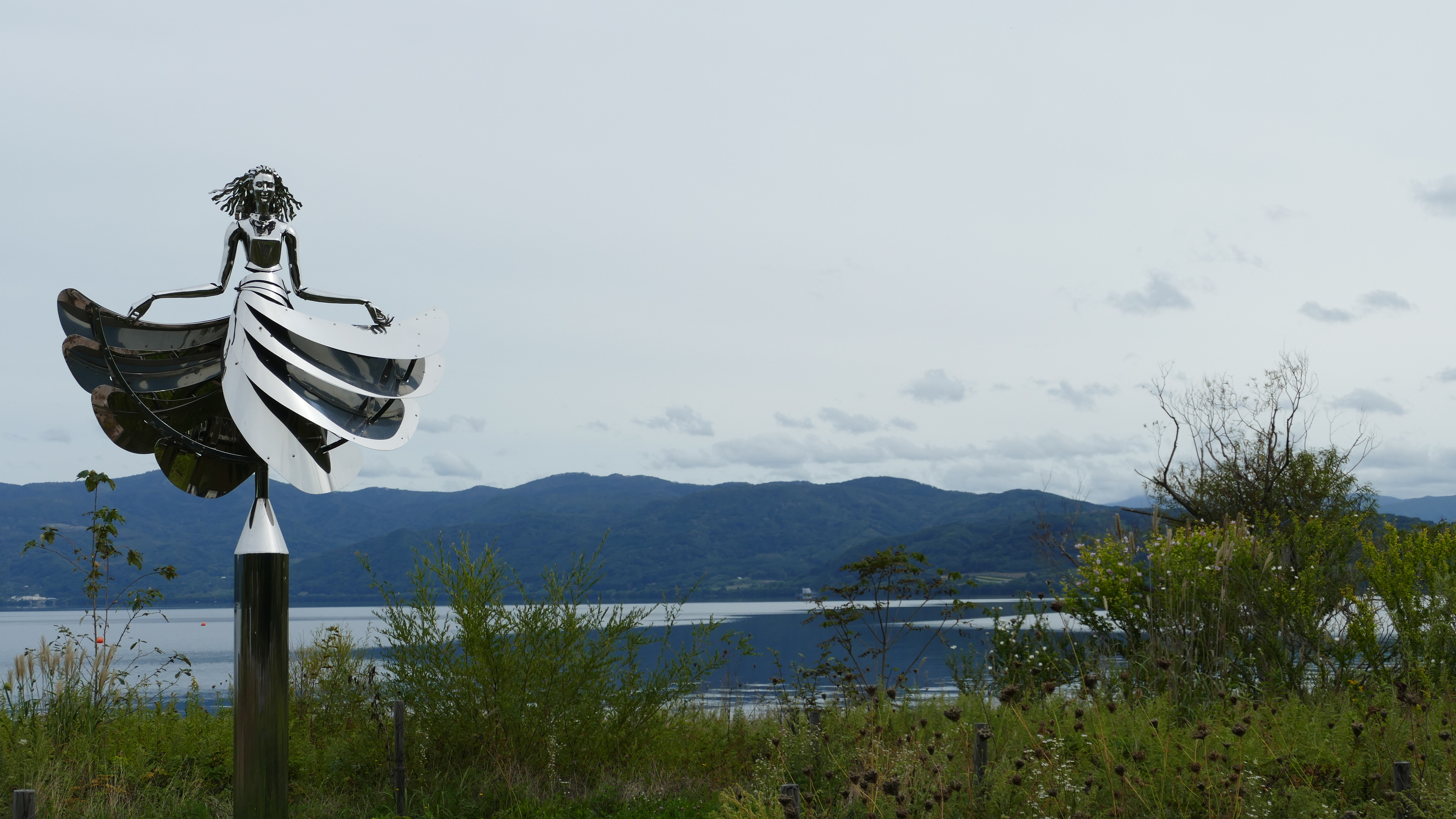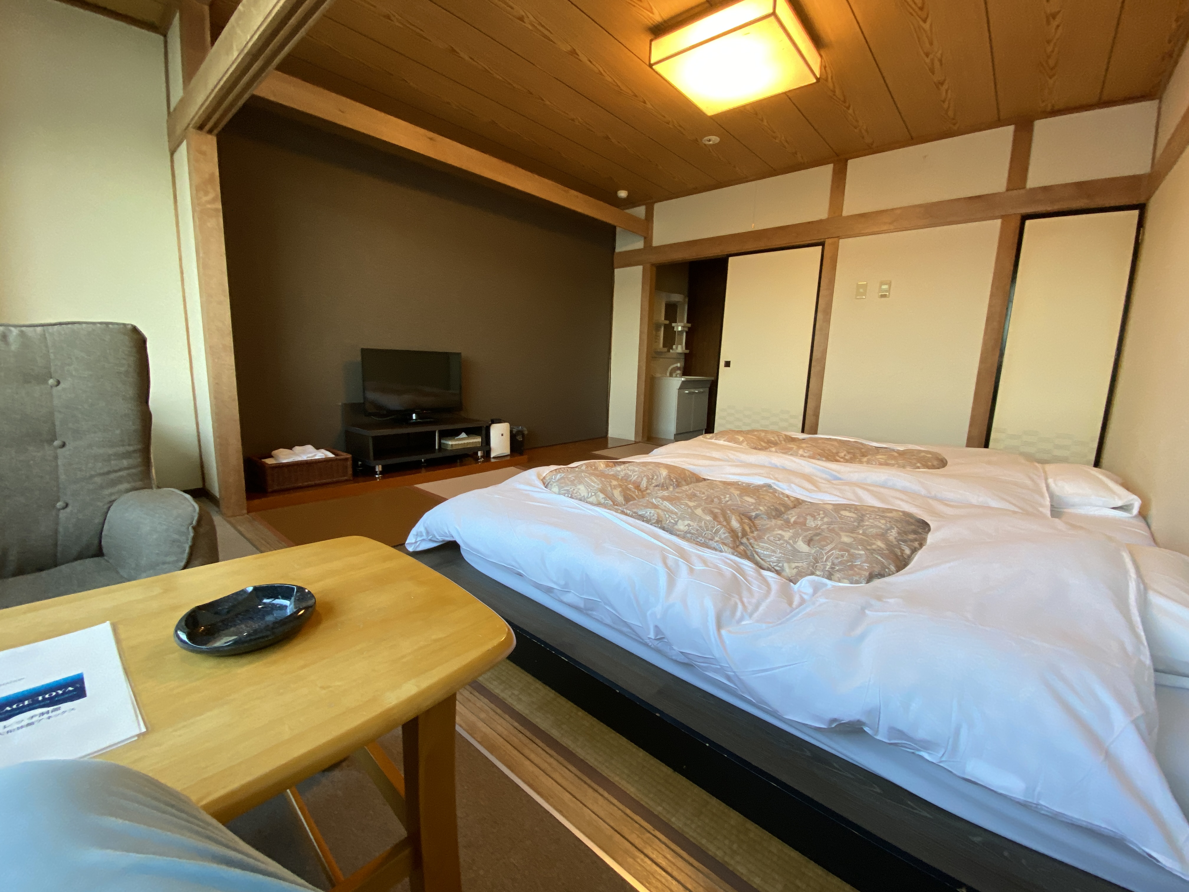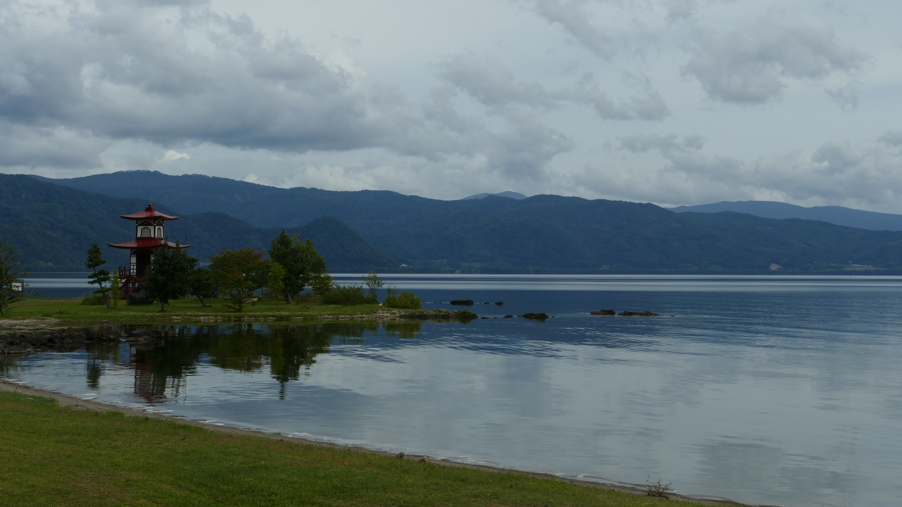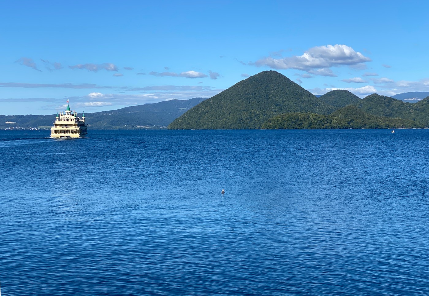 Ko betekent meer in het Japans en dus zitten we hier in Toya-ko ofwel aan het meer van Toya. De reis ernaar toe was ook al heel mooi met uitzicht op bergen en vulkanen. We kunnen hier heerlijk wandelen en fietsen of de vulkaan beklimmen. En als je dat niet wilt is er ook weer een kabelbaan die je naar boven brengt. Ik houd het op wandelen en fietsen deze keer en geniet van de mooie omgeving. Een waterval, een prachtige plek in het meer met een klein tempeltje, een kratermeertje, sculpturen langs de rand van het meer. Kortom, er is genoeg te zien en te beleven en we worden elke avond ook nog verrast met een vuurwerk vanaf bootjes wat we kunnen zien vanuit het hotelraam. Na al die bezigheden heb je zin in een douche, maar dat kan in dit hotel niet. Het is een zogenaamde ryokan en dat betekent dat je Japans ingerichte kamers hebt met tatami-matten, matrassen op een kleine verhoging in de kamer en vooral: geen douche. Je gaat in de “onsen”. Dit is een heetwaterbad, gevoed door water dat uit de vulkanische grond komt en dus zeer heet. En daar mag je dan niet zomaar in plonzen. Je moet je vooraf grondig schoon boenen. De Japanners doen dit met een heel ritueel, ik doe het even snel want ik heb geen idee wat ik allemaal zou moeten doen. Maar je knapt er wel lekker van op.