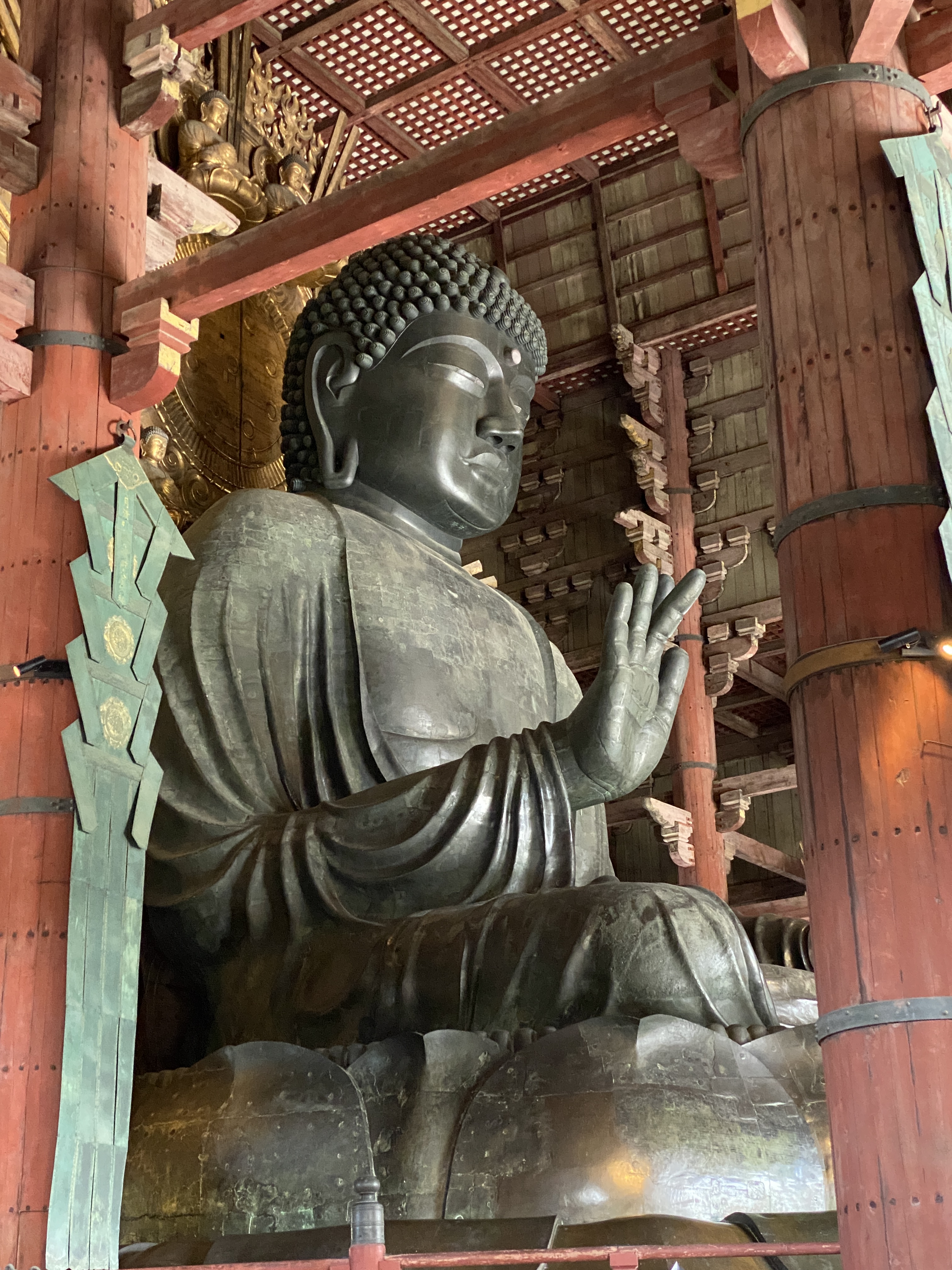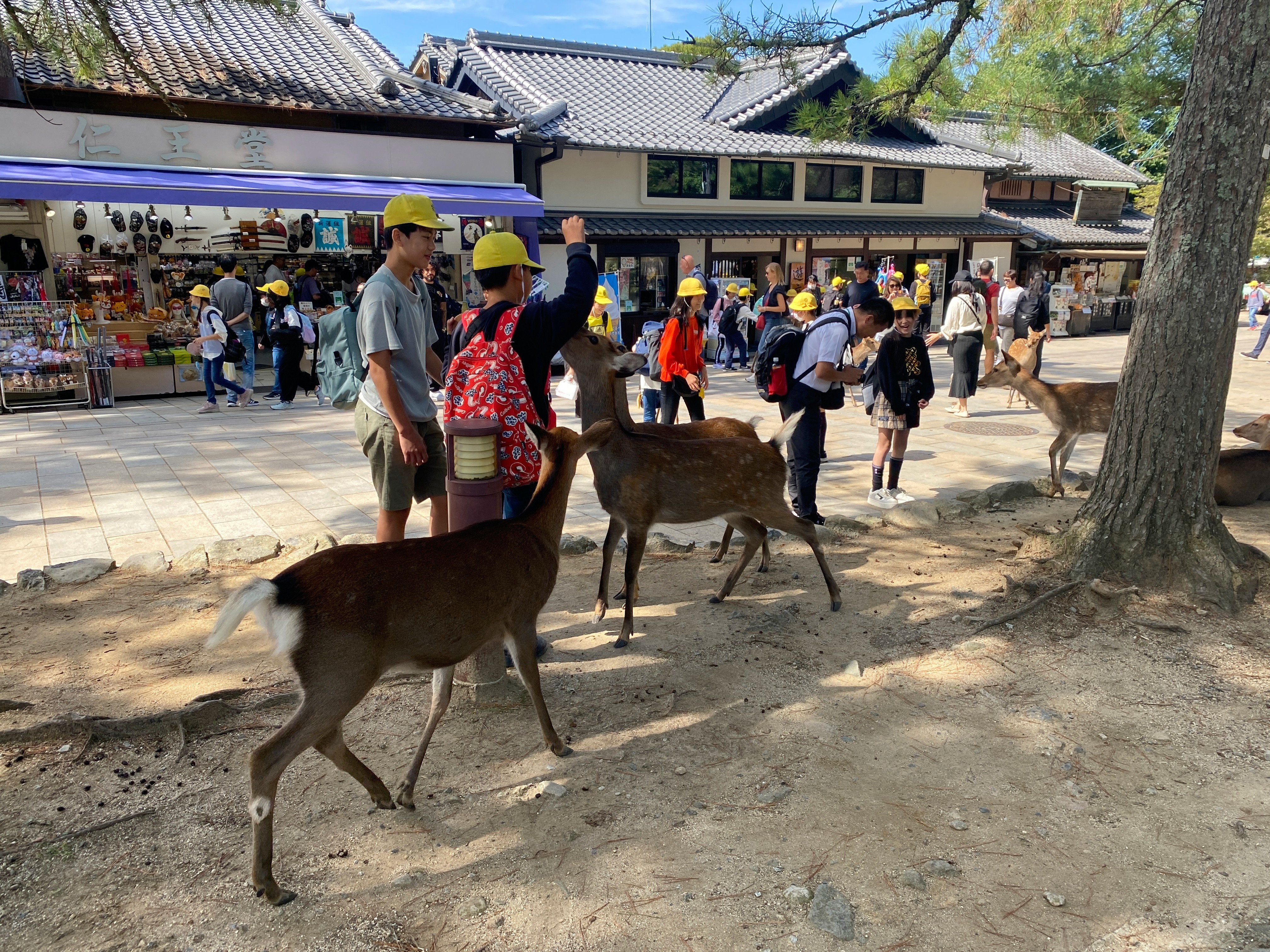 Vanuit Tokio ben ik een aantal dagen neergestreken in Kioto (daarover in mijn volgende blog meer). Vandaag heb ik een uitstapje gemaakt naar Nara. Dat is met de trein een uurtje van Kioto vandaan. Nara is de eerste permanente hoofdstad van Japan, hoewel het dat niet erg lang is geweest: 710-794 nC. Kioto nam het stokje toen over. En pas veel later werd Tokio de hoofdstad. De meest belangrijke plekken zijn te bewonderen in het Nara Park, waar het dan ook zwart ziet van de mensen. En reeën! Deze schattige dieren worden als goddelijk beschouwd en mogen dus vrij rondlopen. Ze zijn van nature aanwezig in deze omgeving maar zijn zo aan de mensenmassa gewend, dat ze er gewoon tussendoor lopen. Niet in de laatste plaats omdat ze eten krijgen natuurlijk. De mooiste plekken die ik vandaag bezocht heb: de Great South Gate, een gigantische houten toegangspoort met enorme houten beelden aan de zijkanten en de Todai-ji tempel. Dit is eigenlijk een tempelcomplex waarvan het grootste houten gebouw ter wereld met daarin een 16 meter hoog boeddhabeeld de belangrijkste trekker is. Boeddha wordt geflankeerd door enorme beelden van ‘deities’ (goddelijke beelden). Er zijn veel schoolkinderen aanwezig en die hebben vooral oog voor de pilaar waar onderin een gat is gemaakt. Wanneer je door dit gat kunt kruipen, is voorspoed, gezondheid etc. gewaarborgd. Maar het gat is zo klein, dat alleen hele dunne mensen er doorheen kunnen. De kinderen vermaken zich er uitstekend mee. Na een paar uur rondlopen tussen alle gebouwen, tempels, shrines en beelden is het tijd voor een lunch. Ik vind een piepklein restaurantje (3 tafels) in een woonhuis. Japanser kun je het niet hebben want we zitten op kussens op de tatamimatten, er is een klein tempeltje en de wanden zijn van rijstpapier. En de yakitori was erg lekker. En verder: de schoolkinderen hebben hier bijzonder schooltassen: de randoseru. Dit woord is afkomstig van onze Nederlandse ransel. De tas werd door Nederlandse handelaren in Japan geïntroduceerd en natuurlijk in de loop der tijden gemonderniseerd. En dan nog één keer het toilet. Ik raak niet uitgekeken wanneer ik hier naar de WC ga en vandaag heb ik toch wel het meest fancy bedieningspaneel gezien tot nu toe.