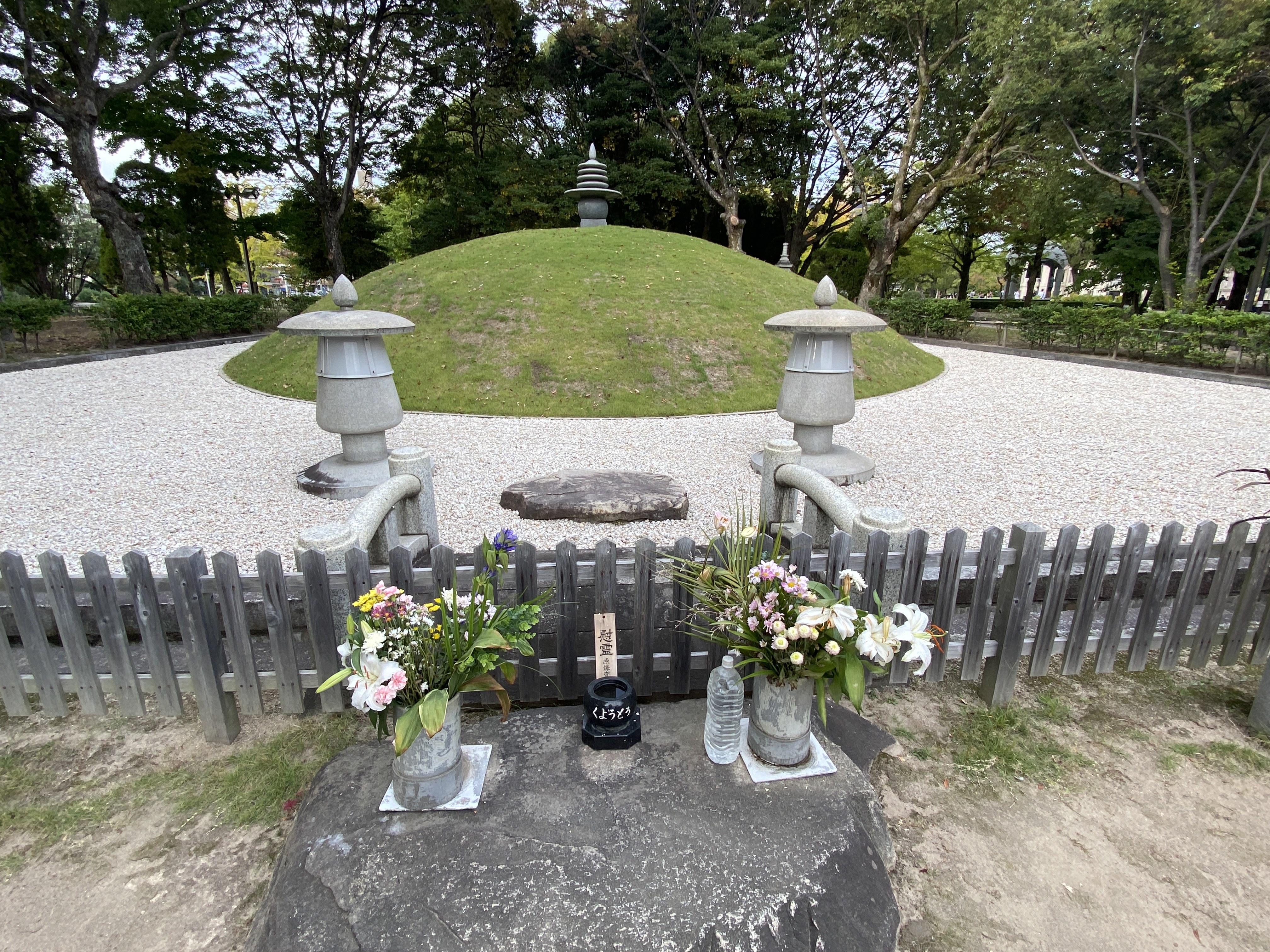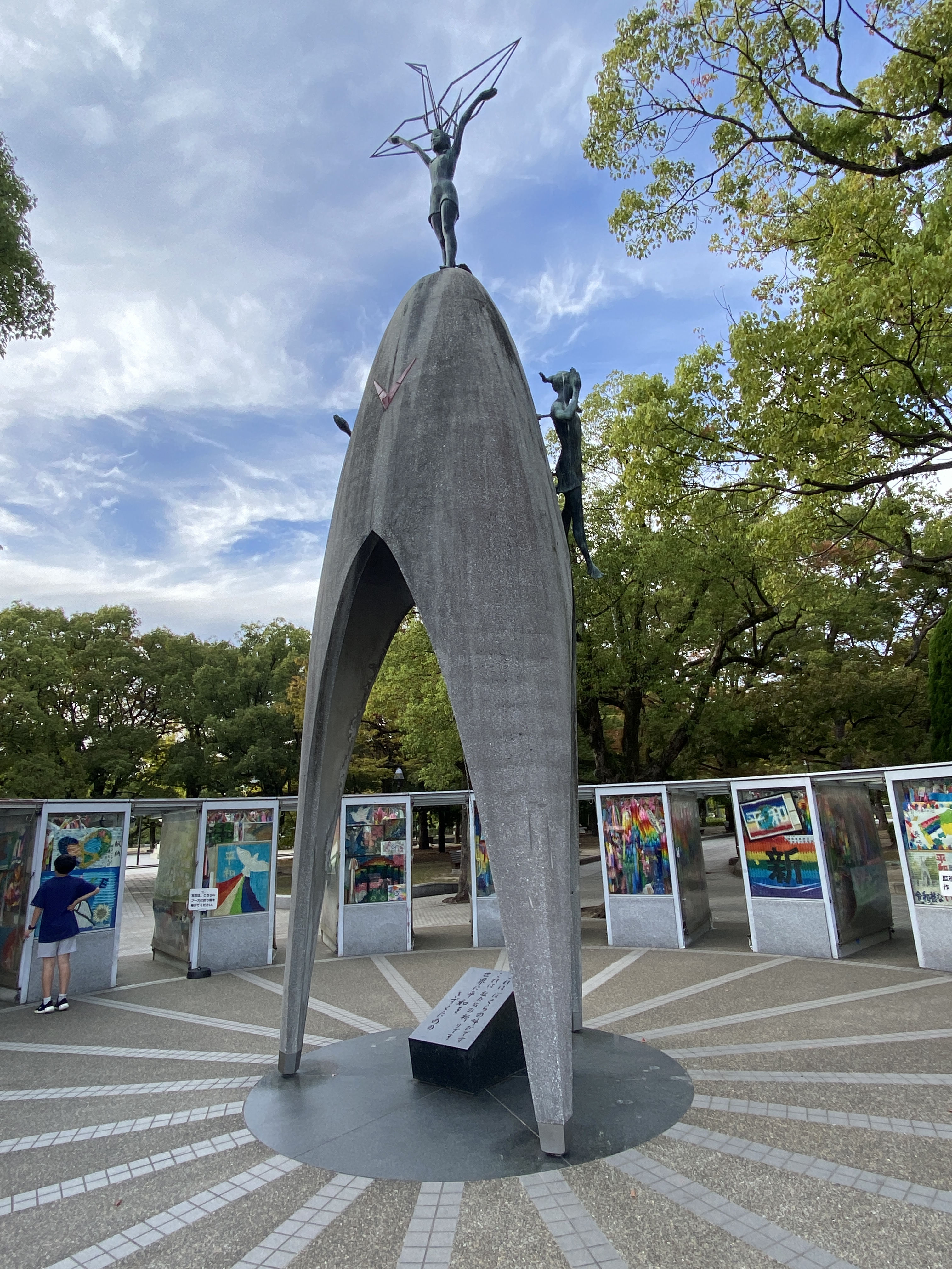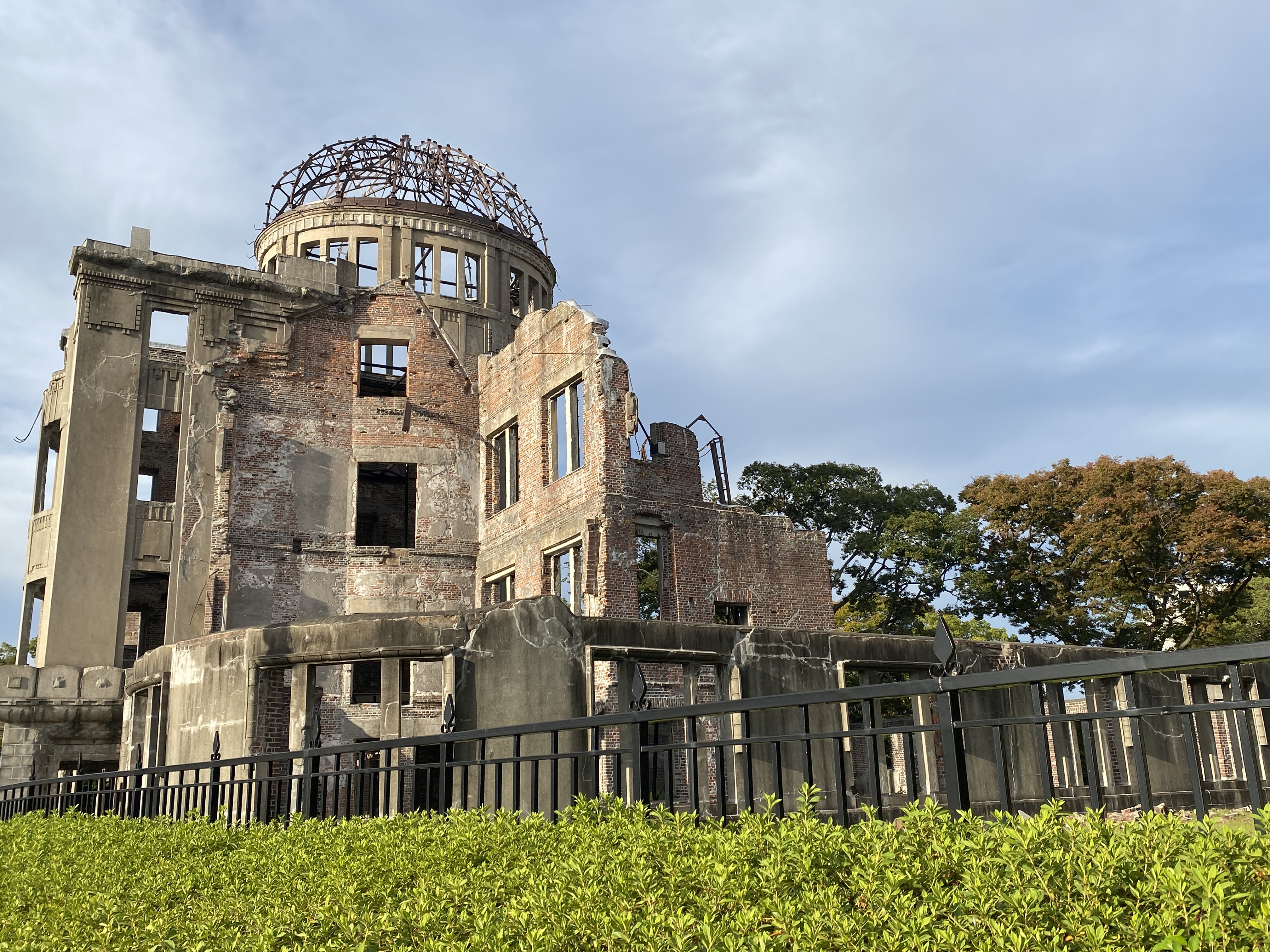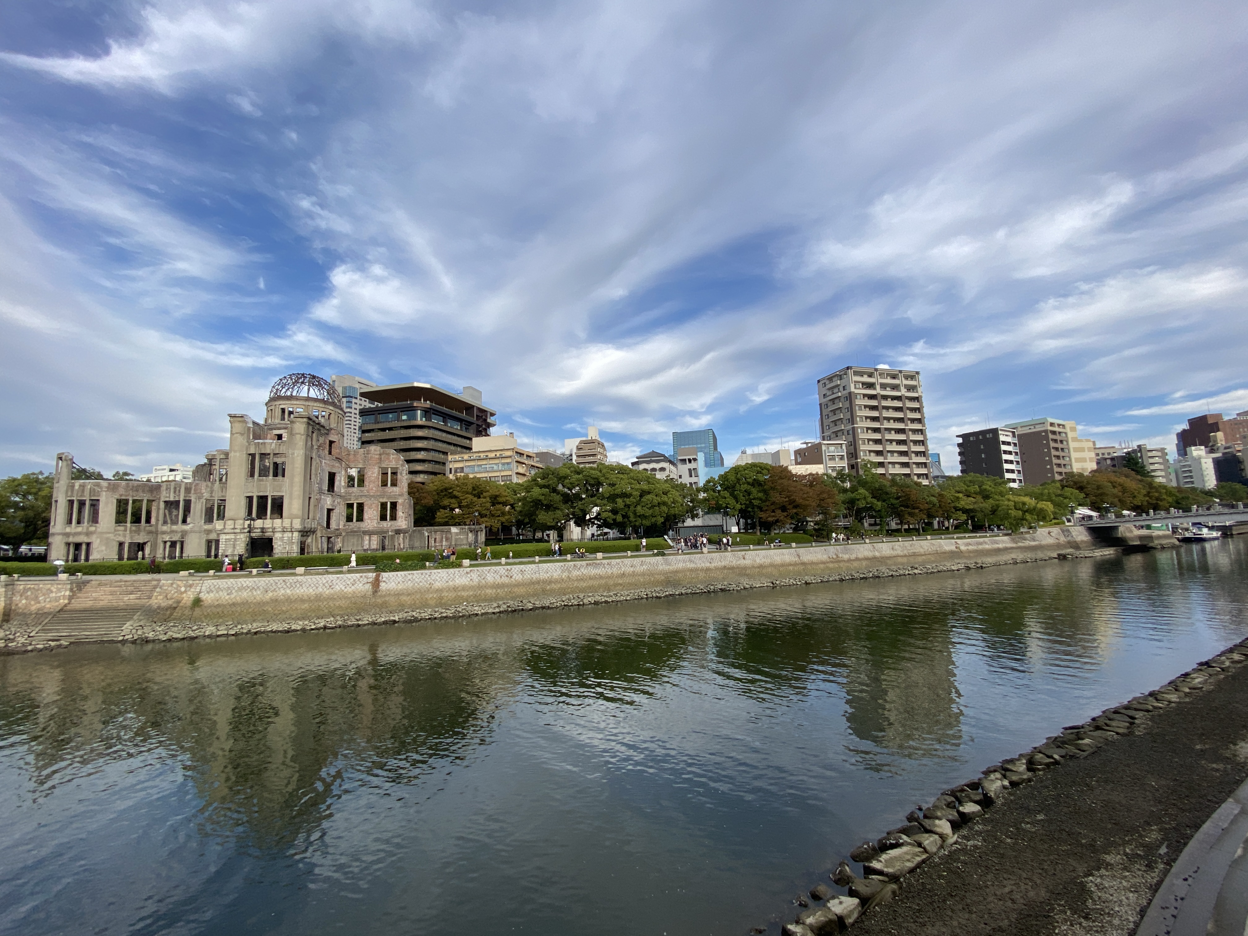 Na alle natuurschoon en tempels is het nu tijd voor het serieuze werk: Hiroshima. De stad die op 6 augustus 1945 voor 90% werd verwoest door de eerste atoombom met de naam “Little Boy” Deze Little Boy verwoestte dus bijna een hele stad en een tweede bom drie dagen later een groot deel van Nagasaki. Alleen al in Hiroshihima kwamen daarbij 140.000 mensen om en in de jaren daarna kwamen daar nog een paar honderd duizend bij door stralingsziekte. Geen wonder dat een groot “Memorial Park” is opgezet. Je kunt het Hiroshima Memorial Museum bezoeken, er is een eeuwige vlam en hét monument is de Genbakukoepel, een voormalig overheidsgebouw dat weliswaar volledig uitbrandde maar waarvan het skelet nog steeds aan de oever van de rivier staat als blijvende herinnering aan de verschrikkingen. Ook is er is een grafheuvel waarin de as van tienduizenden mensen is ondergebracht. Het museum is zeer indrukwekkend, met veel foto’s en verhalen van overlevenden. Twee verhalen spraken mij in het bijzonder aan: een meisje van 2 overleefde, maar stierf 10 jaar later aan leukemie. Ze hoopte dat ze door het vouwen van 1.000 kraanvogels een wens kon laten uitkomen: dat niet alleen zij, maar ook alle andere kindslachtoffers van de atoombom, een wens zouden mogen doen. En dat ze zouden wensen om wereldvrede en het einde van al het lijden. Het andere verhaal is het verhaal van de vader, die met zijn drie kinderen overleeft. Maar hij is gewond en kan niet meer goed werken en voor zijn gezin zorgen. Hij wordt echter niet geloofd en ze verklaren hem voor lui. In 1967 overleed hij zonder ooit serieus als slachtoffer te zijn gezien.. Dit zijn maar 2 van de vele verhalen. Memorial Park is alles bij elkaar zeer indrukwekkend.