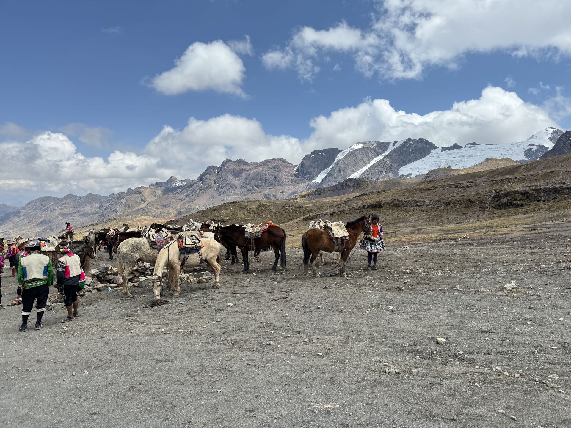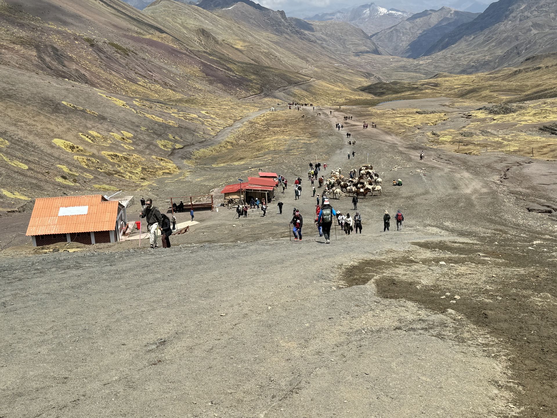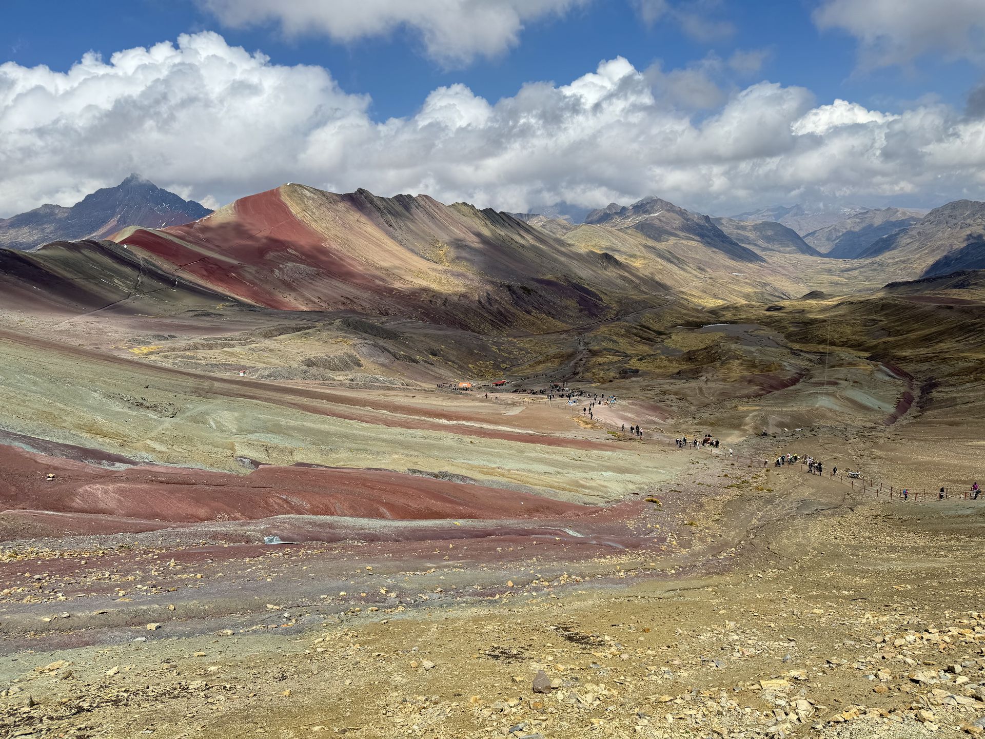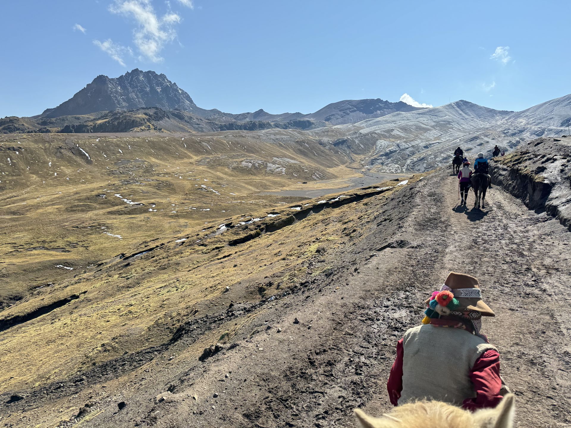Vandaag staat in het teken van Rainbow Mountain, een berg die pas 10 jaar geleden onder de “eeuwige” sneeuw vandaan is gekomen en ontdekt door drie Duitsers. De naam zegt al iets over hoe de berg eruit ziet, 7 verschillende kleuren maken het een bijzondere berg. De trip ernaar toe vraagt weer veel energie. We zitten ‘s nachts al om 4 uur in de bus, eten onderweg een ontbijtje en vervolgen de weg. Deze gaat vooral omhoog tot zo’n 3.570 meter hoogte. Daar stappen we over op de rug van een paard om verder te stijgen naar ruim 4.600 meter. En dan begint de echte uitdaging: nog zo’n 350 meter lopen naar de top. Ik zit nu al 3 weken op hoogtes boven 3.000 meter dus enigszins gewend aan wandelen op hoogte ben ik nu wel. Maar deze klim is erg steil en het idee dat de gids een fles zuurstof bij zich heeft zegt denk ik genoeg over de zwaarte van de wandeling. Gelukkig heb ik dat niet nodig maar ik ben wel heel blij als ik eindelijk zwaar hijgend boven ben. En dan zie je de Rainbow Mountain! Wat een berg! En wat een uitzicht over de bergkam en het dal. Het is de moeite van deze pittige tocht meer dan de moeite waard en ook de wandeling terug naar de bus (we slaan de paarden nu over) is prachtig. De rest van de middag en avond doe ik niet veel want ik moet even bijkomen. Alleen eten op het prachtige Plaza de Armas. Morgen ga ik Cusco ontdekken want wat ik nu gezien heb belooft meer moois.aan we weer wat moois van maken.