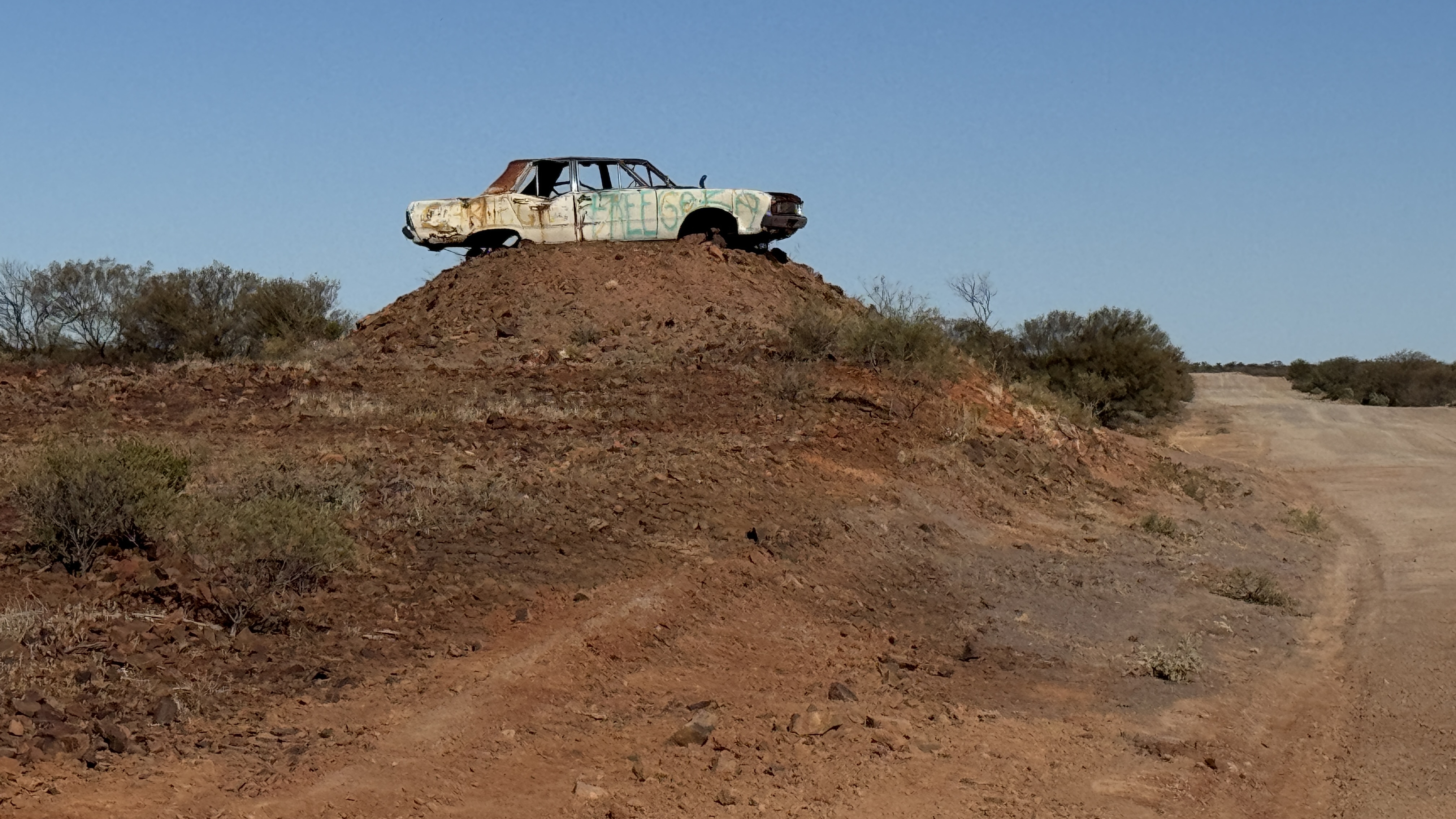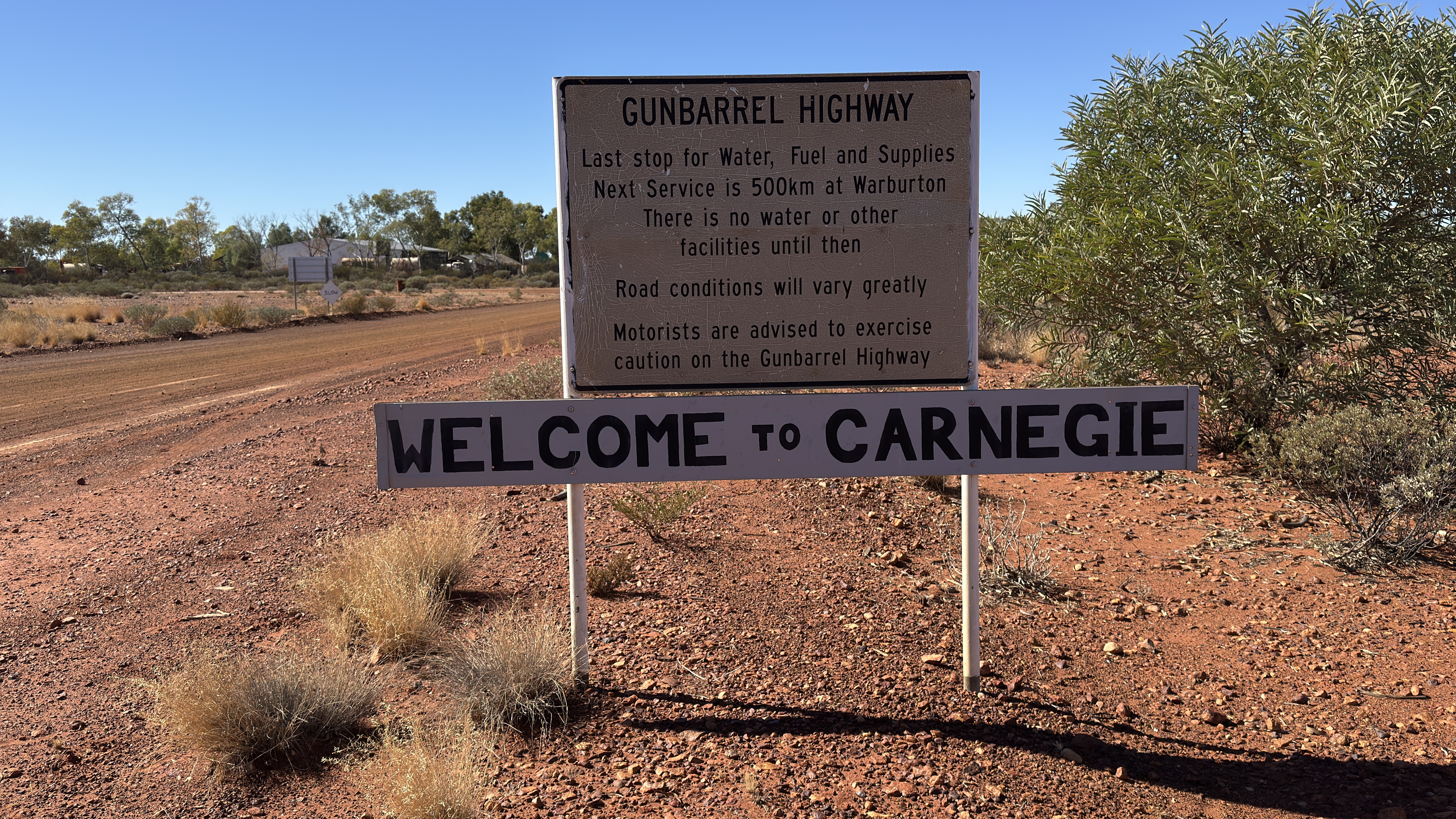 Vannacht redelijk goed geslapen, dankzij extra dekens. Want hoewel het overdag heerlijk weer is met gemiddeld 25°C is het ‘s nachts behoorlijk koud. En vanochtend word ik voor het eerst wakker bij het geluid van de vogels; die kwetteren er in alle vroegte al lustig op los. Vandaag kunnen we douchen op Carnegie Station, een wat ze noemen “cattle station”, die douchevoorzieningen aanbiedt aan voorbijkomende reizigers. Een cattle station is een enorm uitgestrekte veeboerderij. Wanneer we bij het toegangshek komen is het nog 19 km voordat we bij het huis zijn. Over een lange oprijlaan gesproken! Op het erf is wifi dus mijn Polarsteps is denk ik online gegaan, maar ik had maar een paar minuten bereik dus weet het niet zeker. De douche frist lekker op en daar kunnen we weer een paar dagen op vooruit. Verder op de Gunbarrel, de eerstvolgende “nederzetting” is Warburton: 493 km. De weg is tot nu toe nog onverwacht behoorlijk goed, maar het schijnt niet zo te blijven, afwachten maar dus. Onze overnachting is deze keer in Mangkil Claypan Nature Reserve, een NP met meren en een rivier, als er water is. We zitten in de droge tijd en nu zien we alleen droge vlaktes. We blijven hier 2 nachten en gaan morgen de omgeving verkennen.