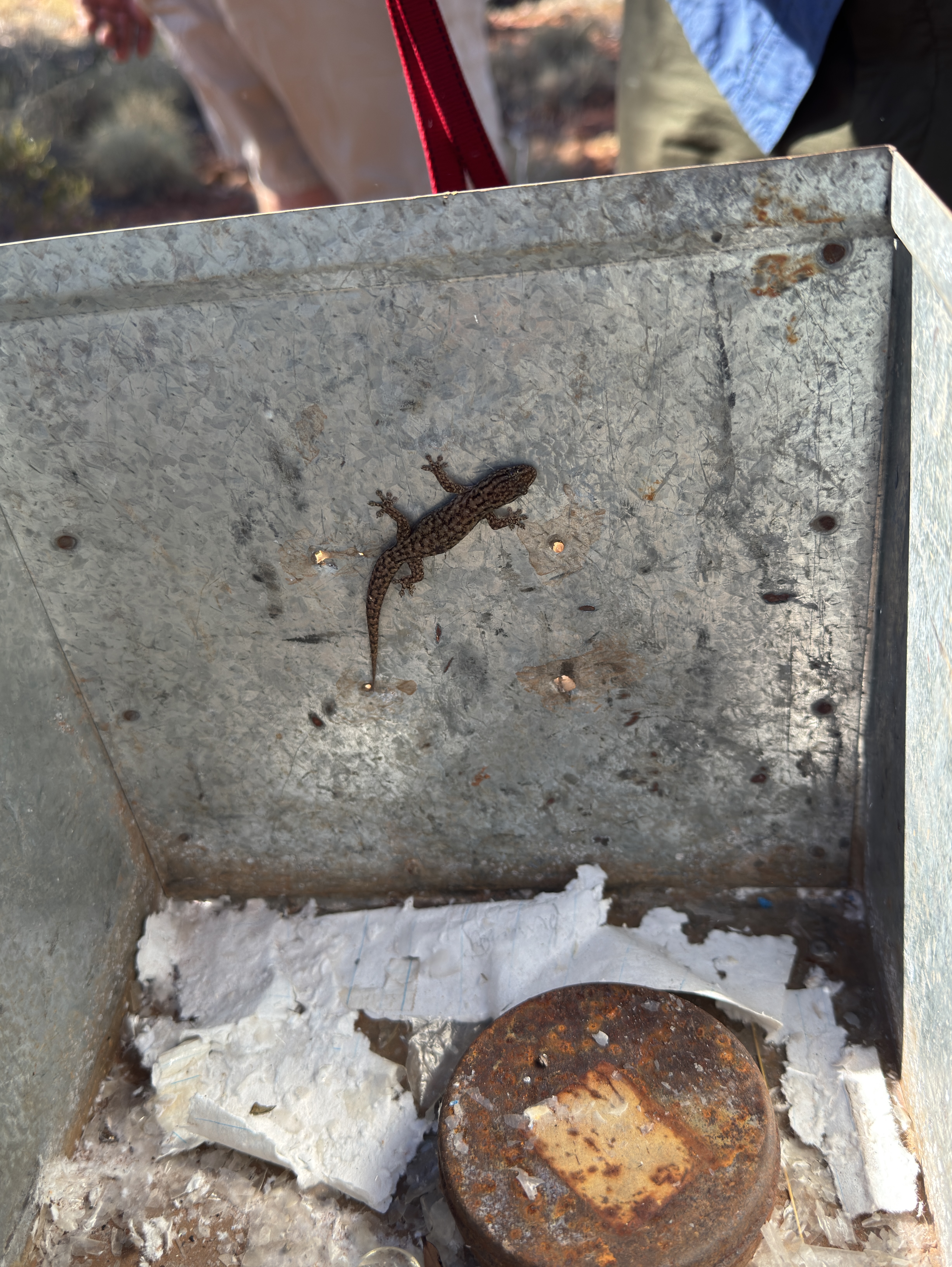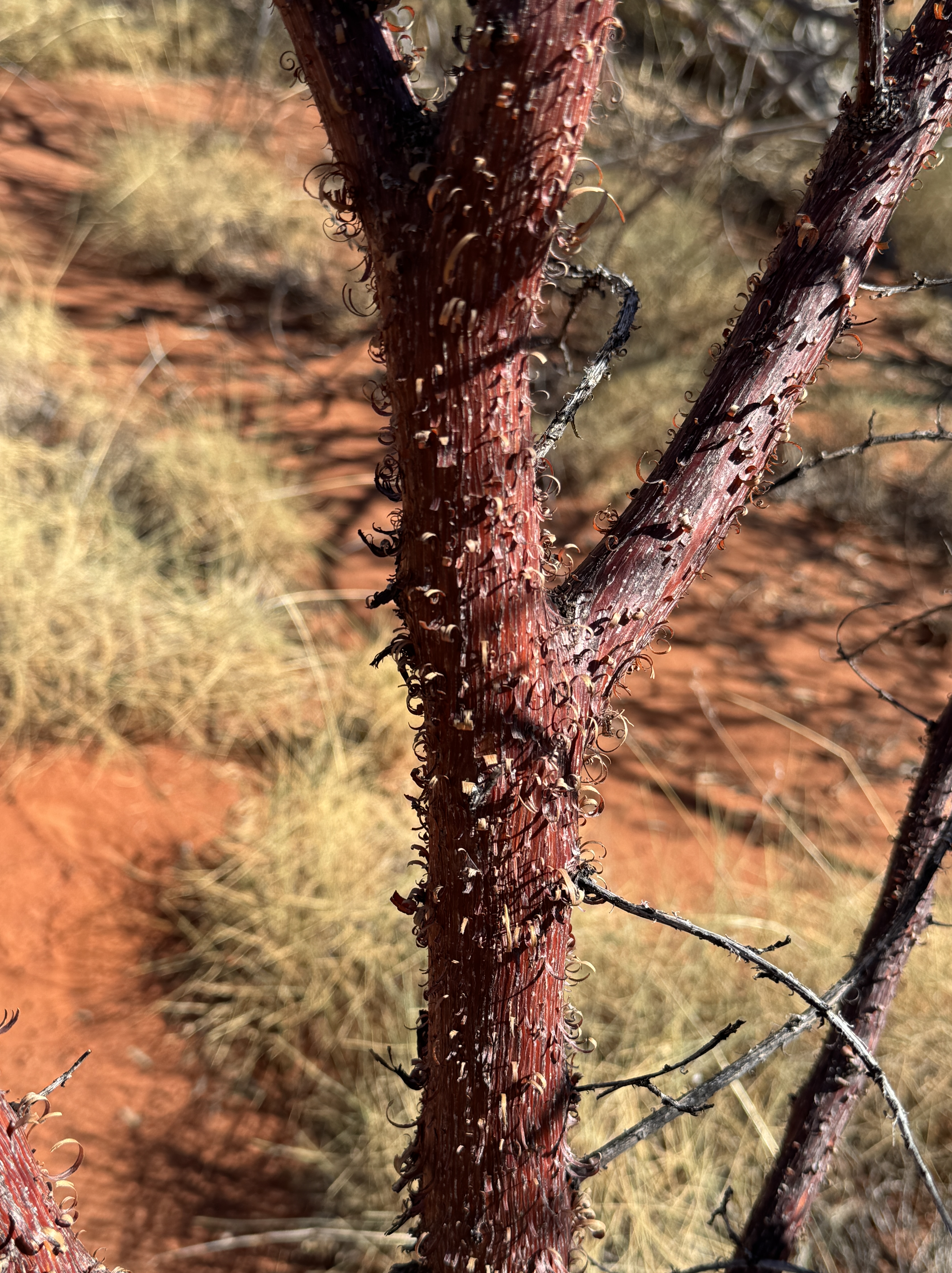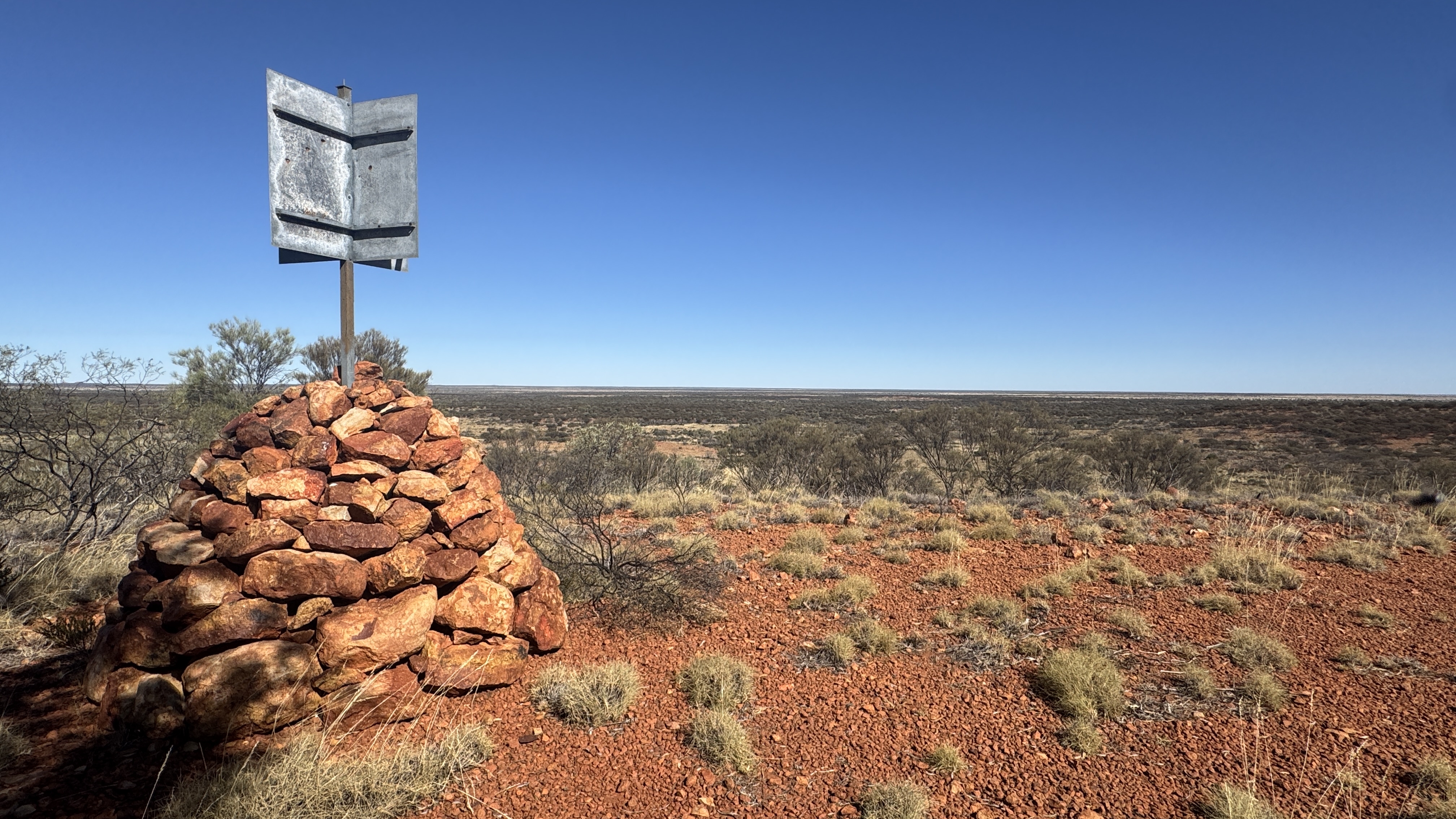 Vandaag gaan we dan eindelijk het gedeelte van de Gunbarrel op, zoals ik me het had voorgesteld: smalle weg, slechte stukken, sporen, zand etc. Hopelijk wordt het nog minder. We stoppen om naar vogels en planten te kijken maar ik loop alleen de weg verder af. Ik hoop kamelen te zien maar helaas… ik zie wel dat de termietenheuvels alweer hoger worden nu we langzaam noordwaarts kruipen. Na een half uur pikken ze me weer op. Onze volgende stop is bij de Geraldton “bore”, waar je water kunt oppompen. De watervoorraad wordt aangevuld en we nemen ieder een half emmertje water en kunnen ons een beetje wassen. Onze lunch is nu echt in het midden van de weg maar die is hier dan ook niet veel breder dan de auto’s zelf. Overnachten doen we aan de voet van twee prachtige rotsen, opnieuw een bushcamp, dus geen voorzieningen. We komen aan het einde van de middag aan en de kleur van de rotsen bij de lage zon is fenomenaal.