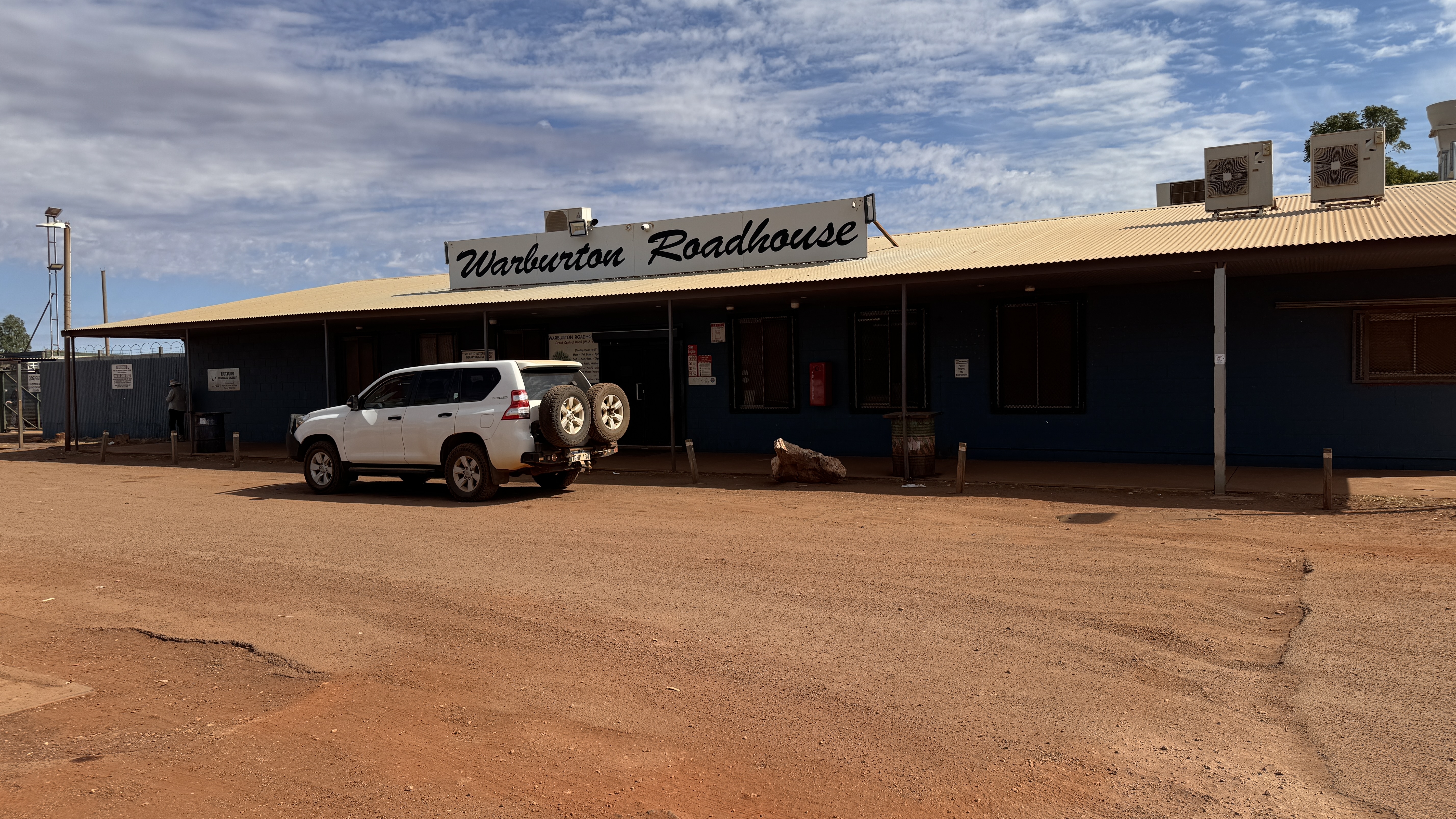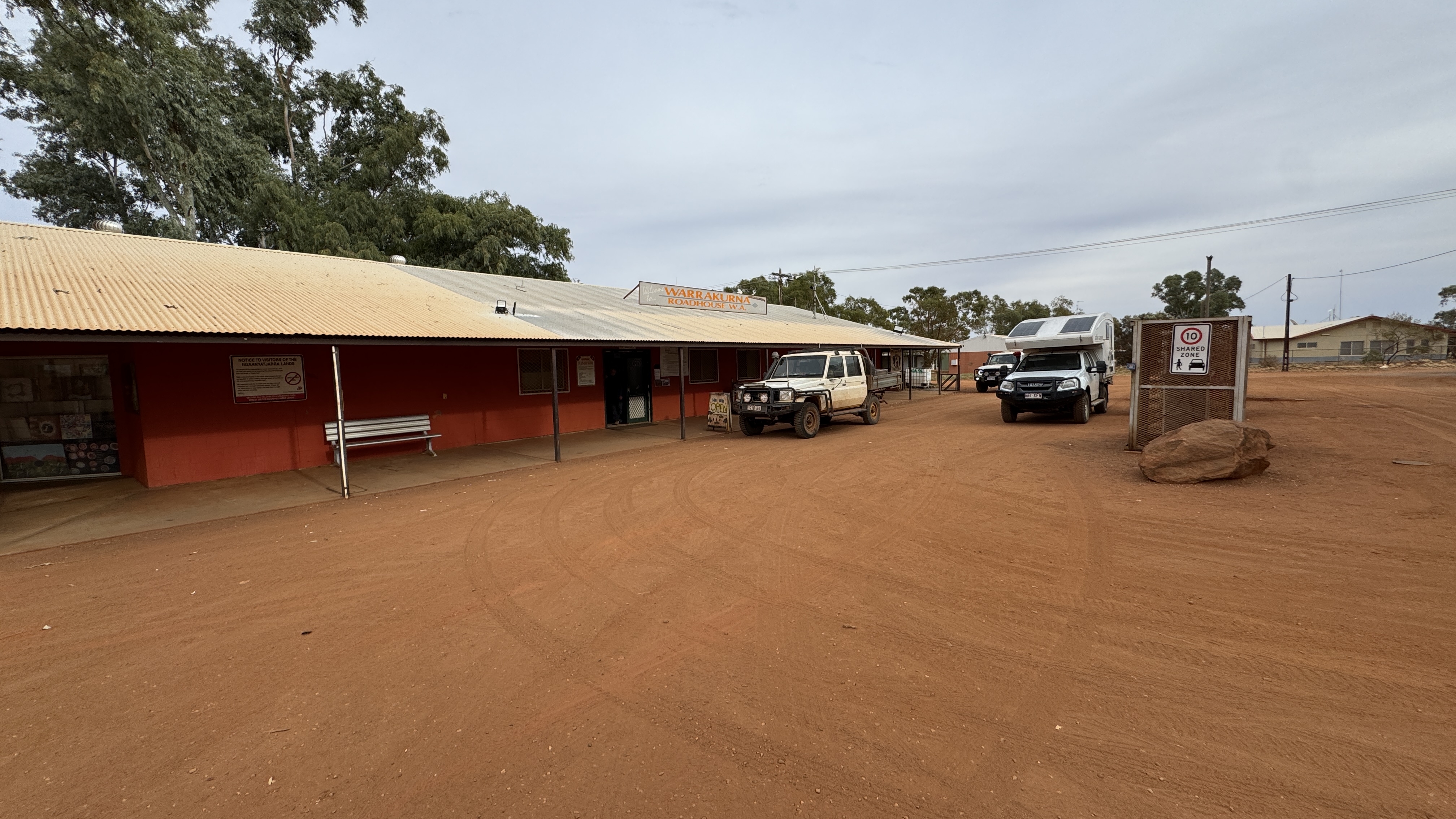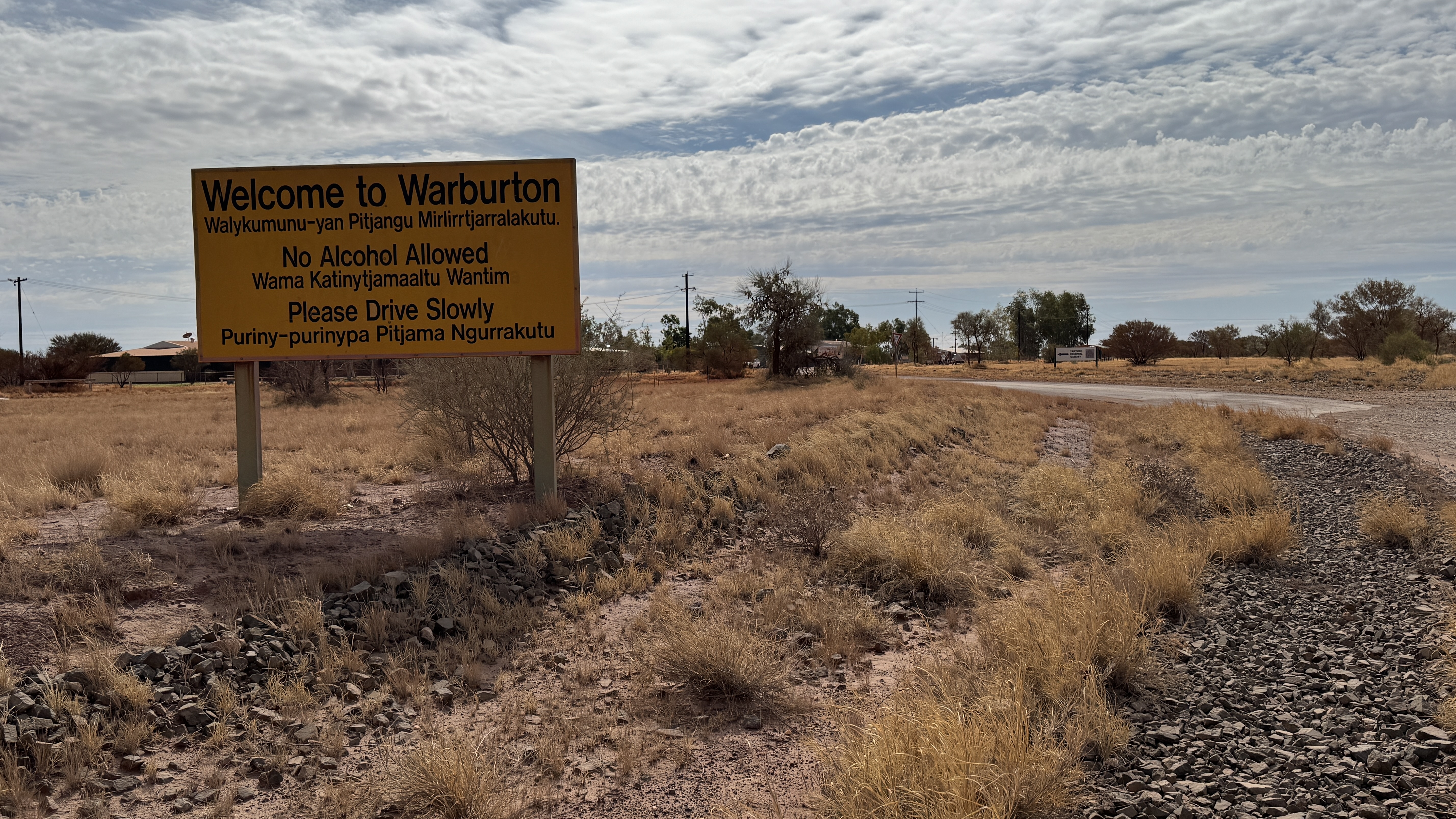 Na een week dirt roads komen we weer op asfalt, de weg naar Warburton. Dit is niet meer dan een roadhouse waar je kunt tanken en een kleine aboriginal gemeenschap. Deze gemeenschappen vind je verspreid over de hele outback van Australië en de aboriginals kunnen daar redelijk hun eigen leven leiden, ondersteund door de Australische overheid. Het zijn meestal maar kleine groepen variërend van 60 tot 400 mensen met eigen voorzieningen zoals scholen en een medische post. En het roadhouse heeft internet! Na bijna een week kan ik weer even wat de wereld insturen en dat betekent: Polarsteps publiceren, WhatsApp bijwerken etc. Warburton behoort dus eigenlijk tot een aboriginal community en dat is voor ons een “no go” area. Alleen het roadhouse kunnen we wel bezoeken maar dat is maar een armzalig gebeuren. Was ook niet anders te verwachten hier natuurlijk. Er hangt een groot waarschuwingsbord over unloaded benzine; dat schijnen de aboriginals hier te snuiven dus je wordt gewaarschuwd om het niet aan hen te geven. De WC zit achter een dubbel slot met cijfercodes. Dat zegt allemaal wel genoeg denk ik. Alcohol mag je niet meebrengen en is hier ook niet te krijgen. Ook ons overnachtingsadres is bij een aboriginal gemeenschap: Warrakurna. We zitten op een heuse camping al is hij niet heel groot of gezellig. Ook hier in Warrakurna zit je bij een aboriginal community dus geen gezellige bar waar je een biertje kunt drinken. Maar we kunnen gelukkig wel douchen en er zijn toiletten. Heerlijk opgefrist en met het geluid van huilende dingo’s op de achtergrond duik ik mijn slaapzak in.